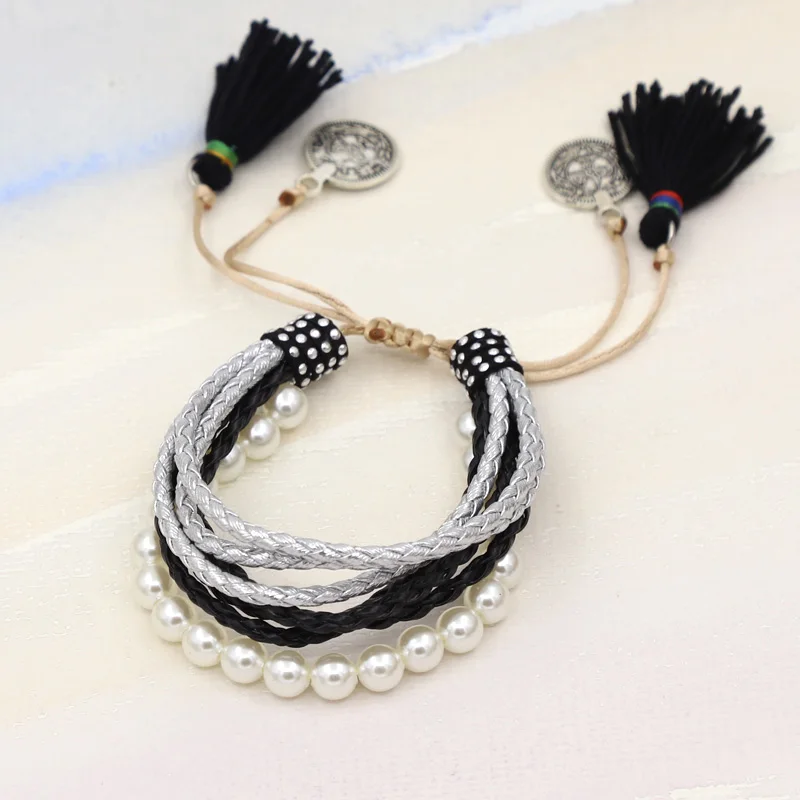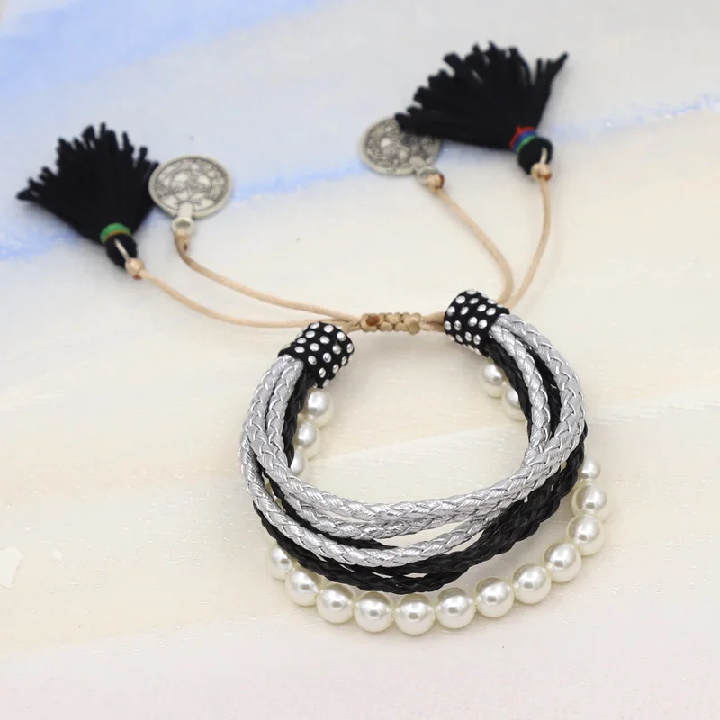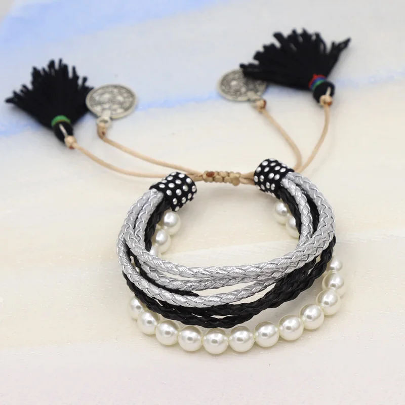 "Ce bracelet en cuir multicouche est vraiment magnifique ! La finition est superbe et les pompons lui donnent un côté très bohème et tendance. J'apprécie aussi que ce soit un accessoire fait main, cela le rend unique. Le seul petit bémol est que le bracelet est un peu plus fin que ce à quoi je m'attendais, mais cela ne diminue en rien son élégance. Dans l'ensemble, je suis très satisfaite de mon achat et je le recommande à toutes les amateurs de bijoux bohèmes."