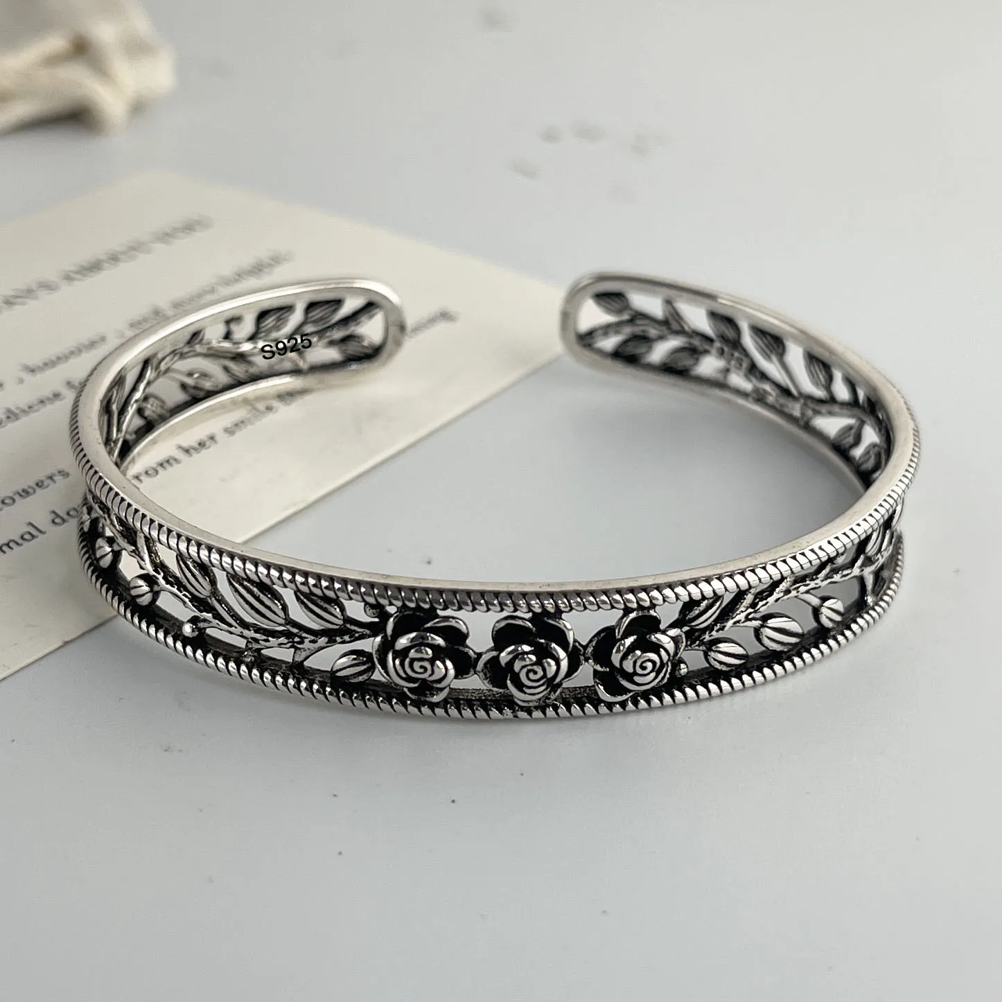 Bracelet en métal 100% argent Sterling 925 massif pour femmes, Vintage, fait à la main, Simple, rétro, chaîne de fleurs, cadeau d'anniversaire, fête |