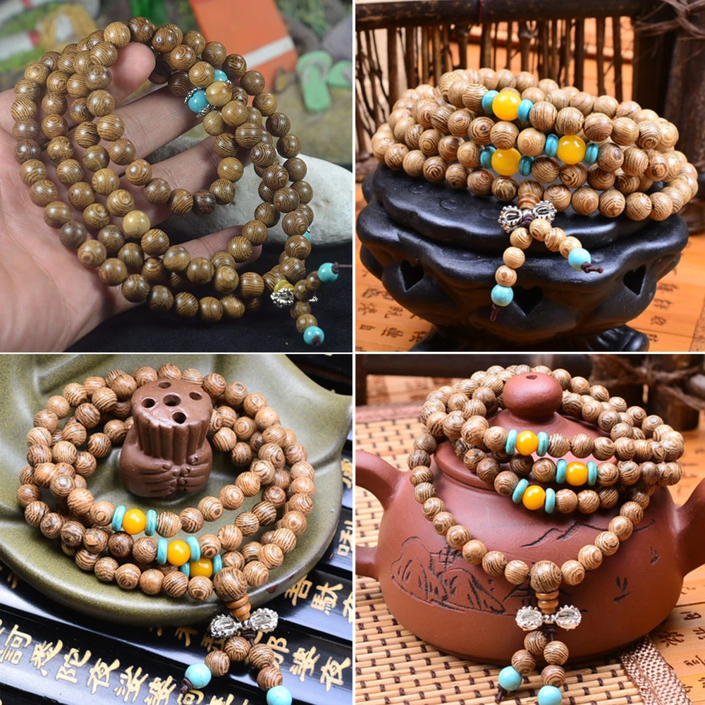 Bracelet en perles de bois pour hommes et femmes, chapelet mala bouddhiste tibétain, perles de prière en herbe, bijoux en bois |