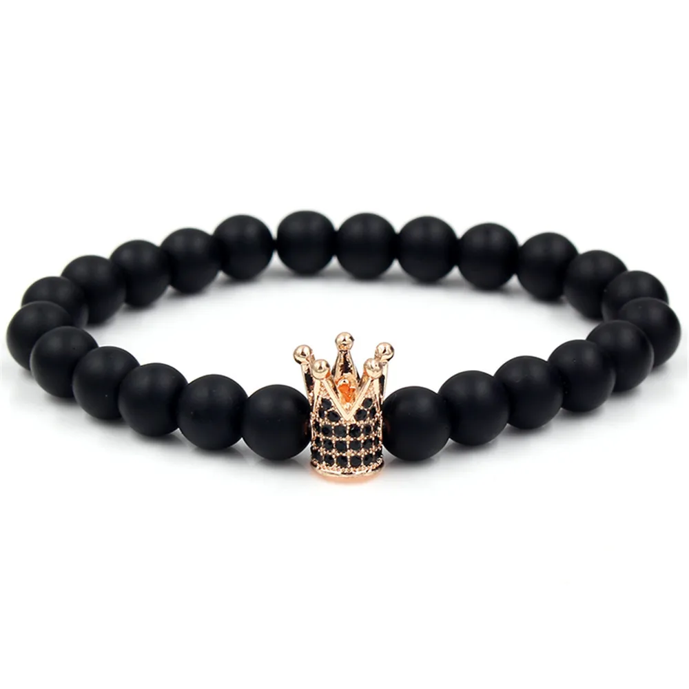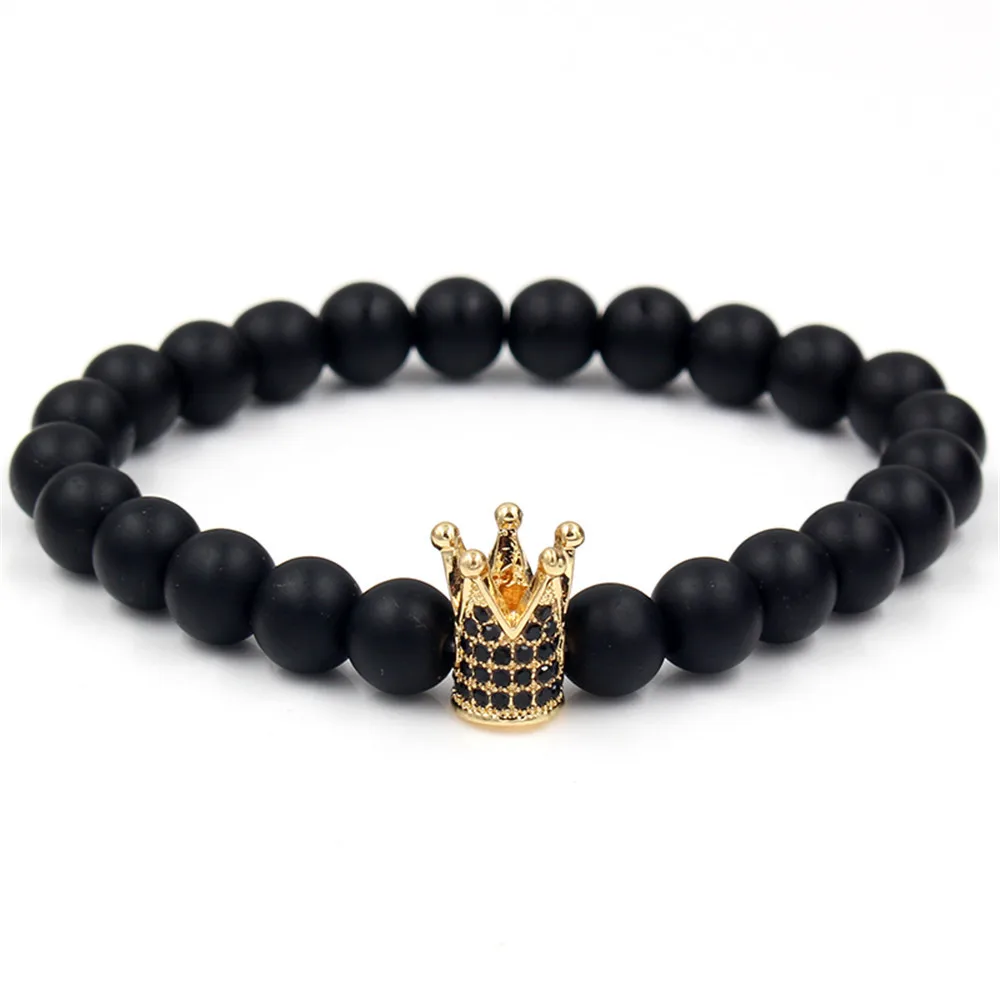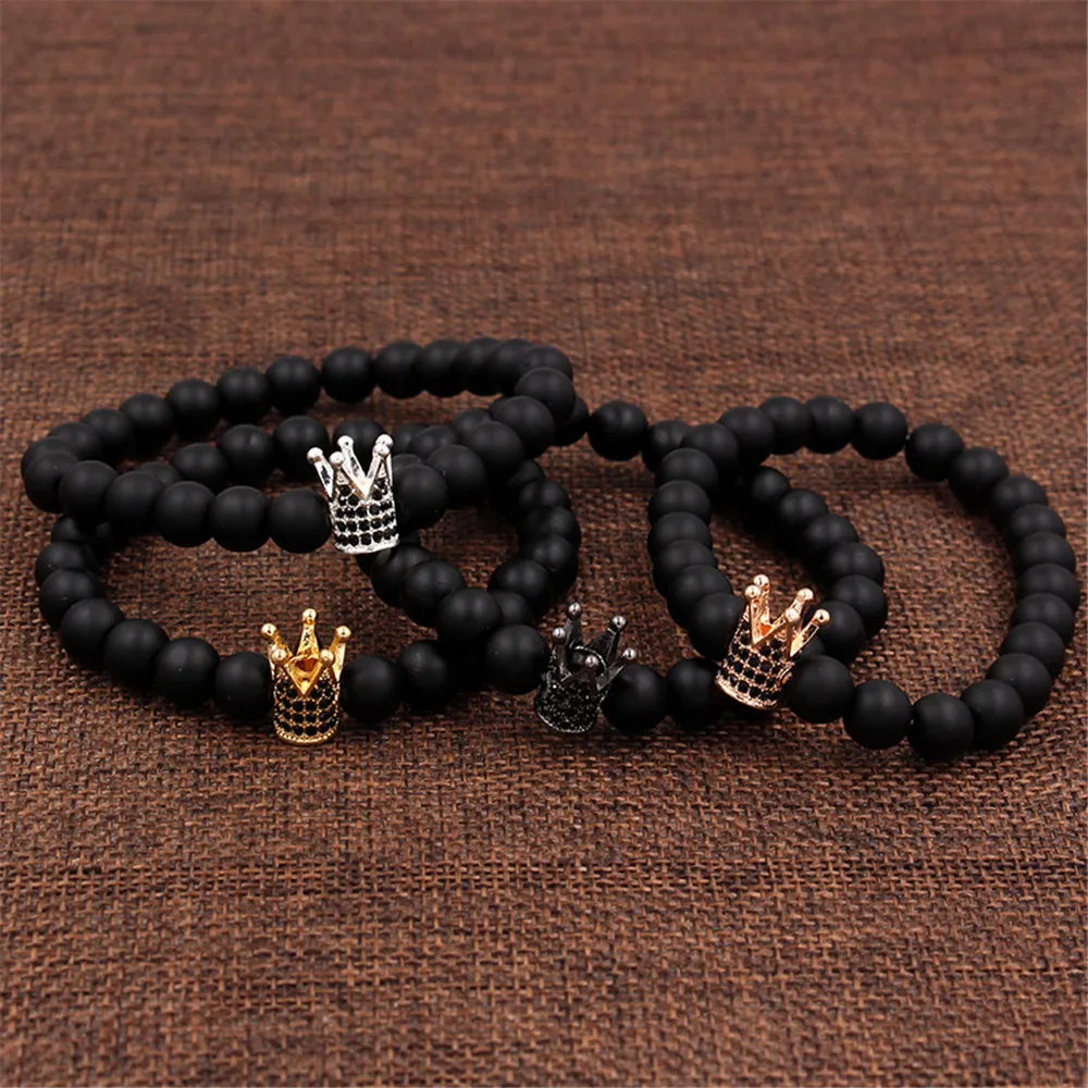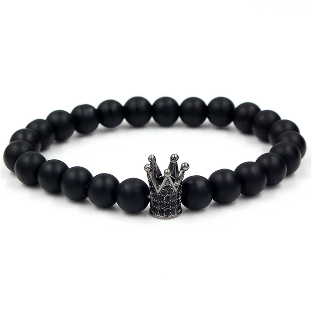 Bracelet minimaliste en pierre sablée noire, mode européenne et américaine, couronne en Zircon incrusté, bijoux de Couple, cadeau de vacances |