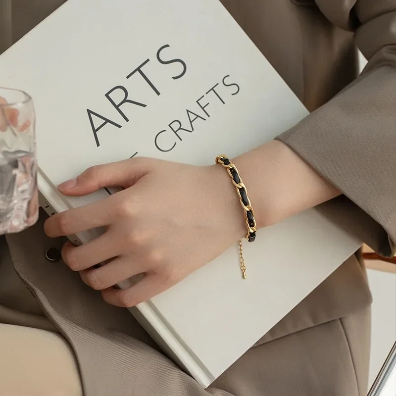 Bracelet tissé en cuir Vintage élégant pour femmes étudiantes, Design polyvalent et élégant, accessoire de bijoux à main Unique