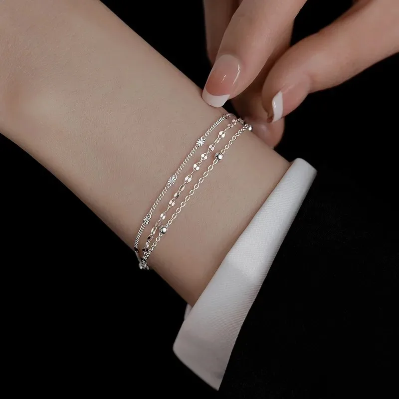 Bracelets de perles en argent Sterling 925 pour femmes, luxe, Style coréen, chaîne multicouche réglable, bijoux fins de fête, cadeaux