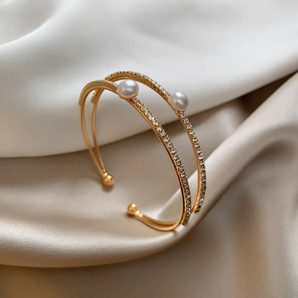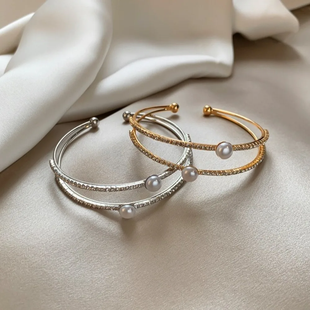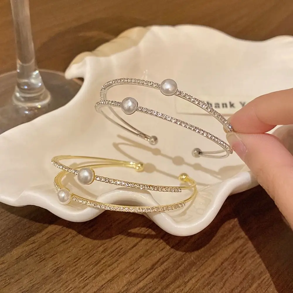 Bracelets d'ouverture de perles à la mode, anneau à main Double couche, strass, bijoux de mariée, ornement de poignet, bal de mariage |