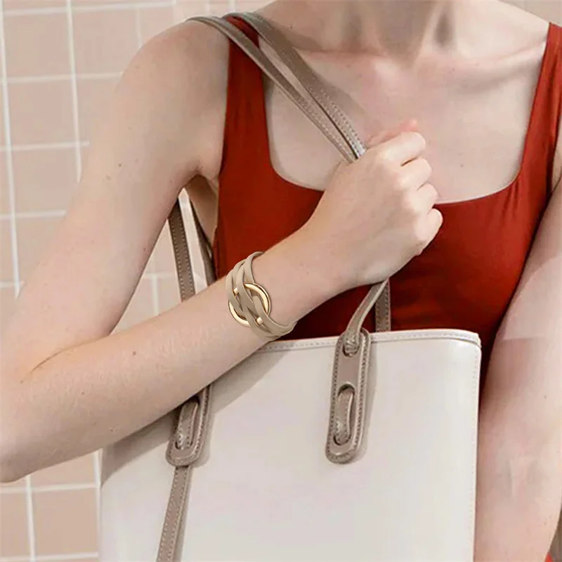 Bracelets en cuir pour femmes, à la mode, élégants, multicouches, large, bijoux cadeau, 2026