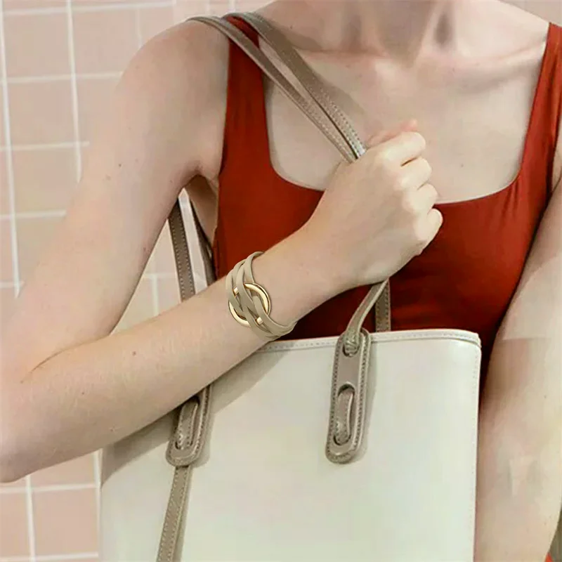 Bracelets en cuir pour femmes, à la mode, élégants, multicouches, large, bijoux cadeau, 2026