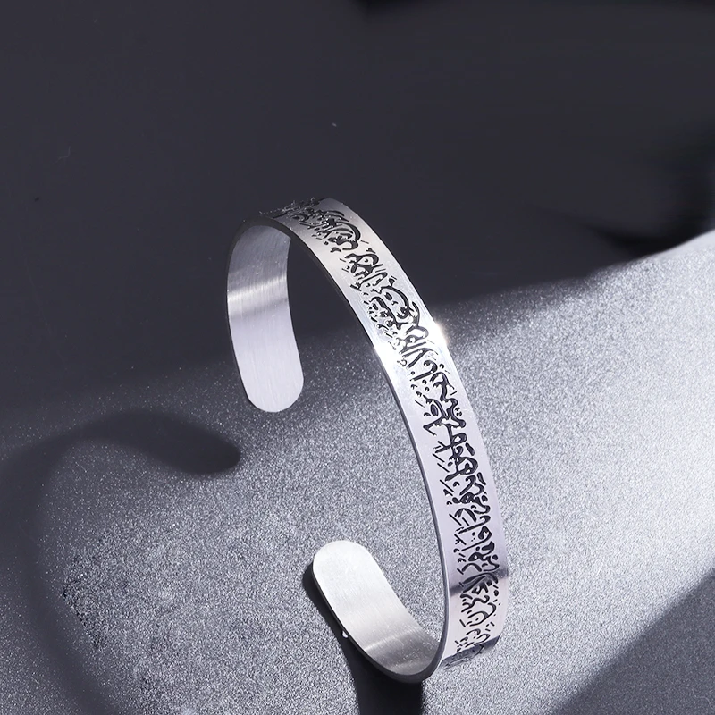 Bracelets ouverts en acier inoxydable pour hommes musulmans, Ayatul Kursi, verset du coran, manchette, calligraphie arabe, bijoux Allah Allah |