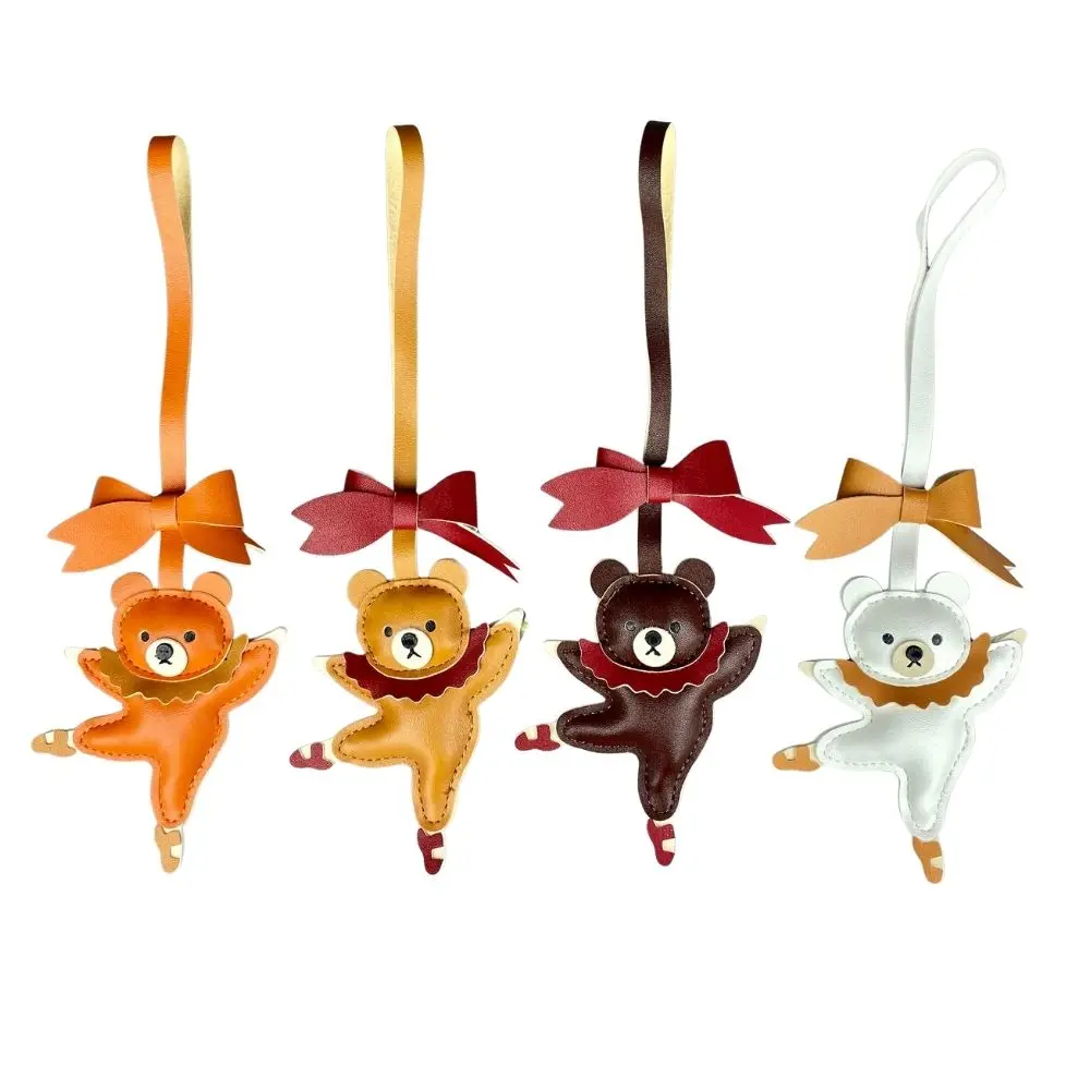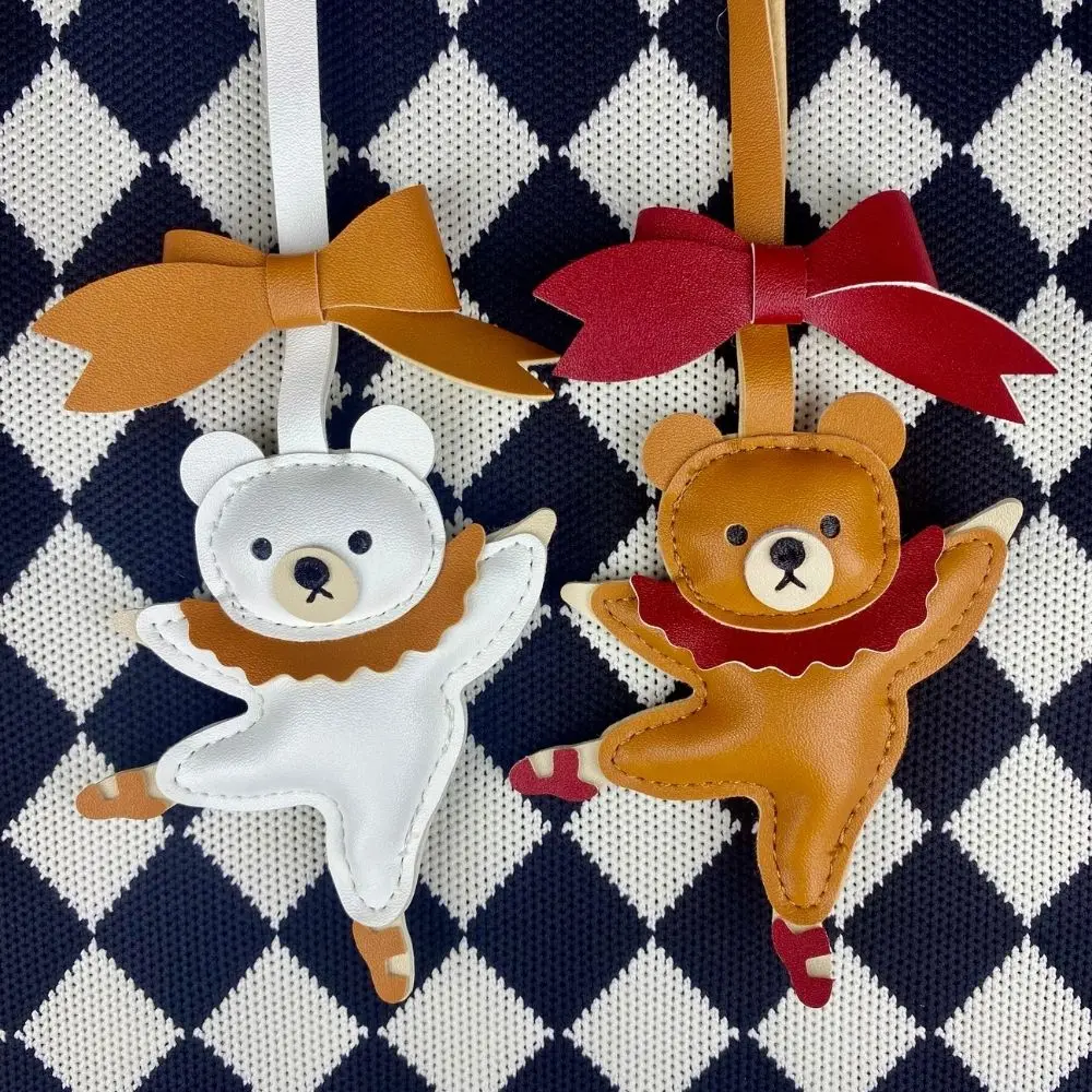 Breloque de sac en cuir PU ours de danse de ballet élégant avec nœud | Cadeau artistique unique pour les danseurs et les femmes |