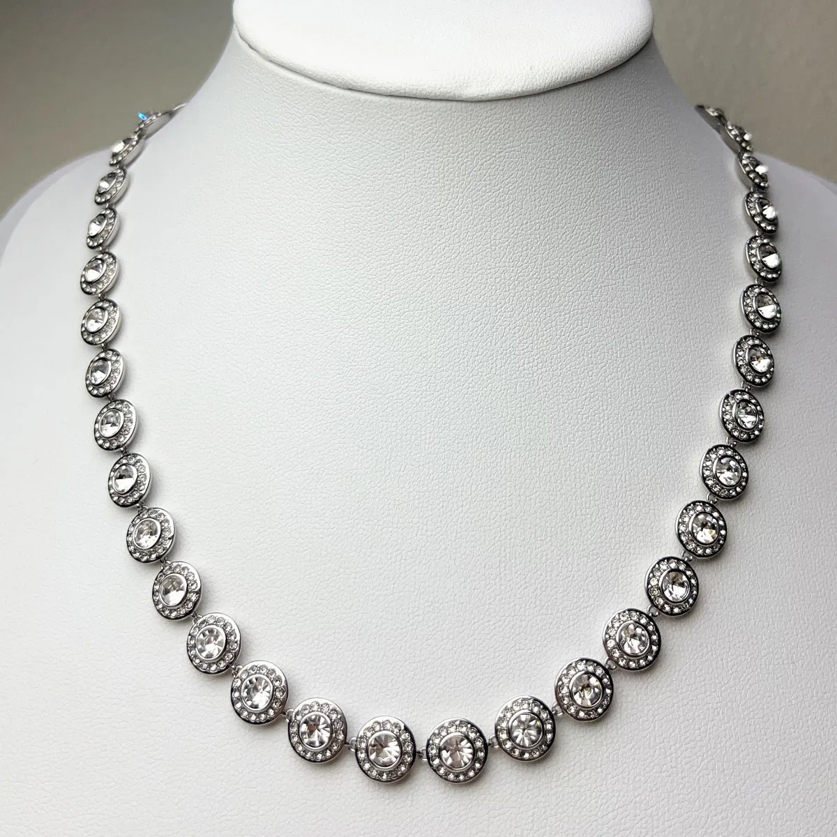 Breloques rondes en cristal argenté, ensemble de bijoux de luxe pour mariage, boucles d'oreilles, Bracelet, collier, bague, cadeau romantique pour femmes, nouvelle collection |