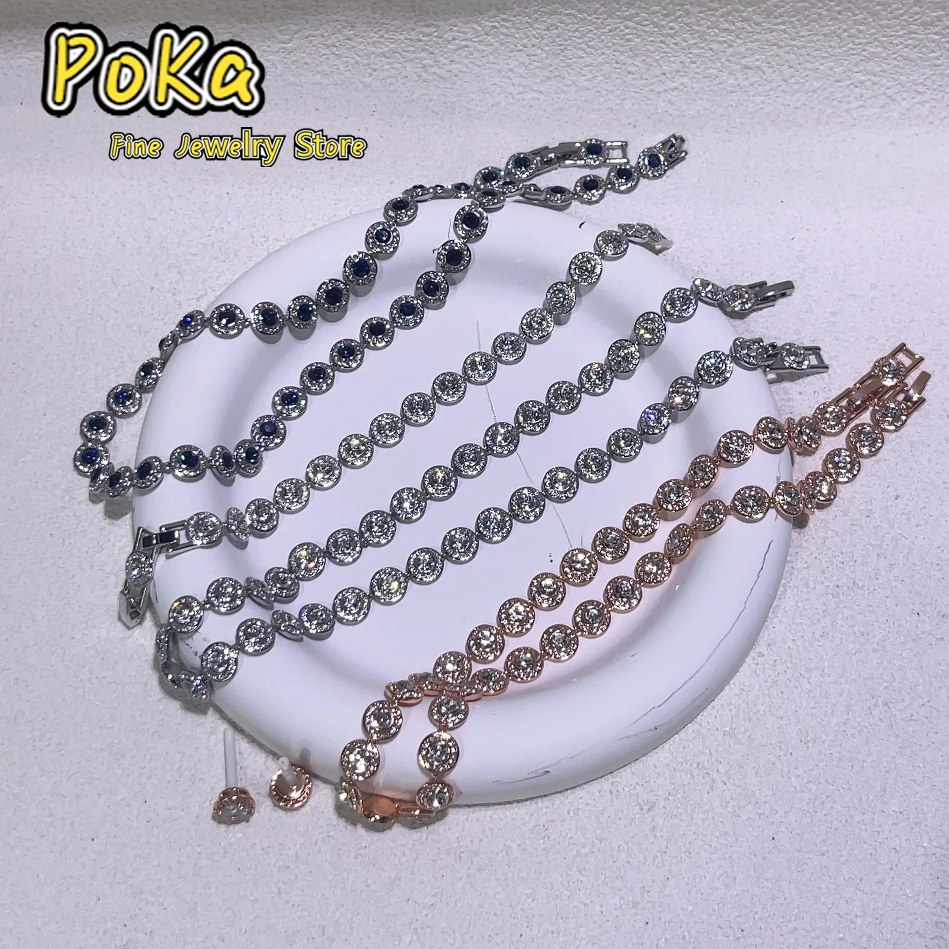 Breloques rondes en cristal argenté, ensemble de bijoux de luxe pour mariage, boucles d’oreilles, Bracelet, collier, bague, cadeau romantique pour femmes, nouvelle collection