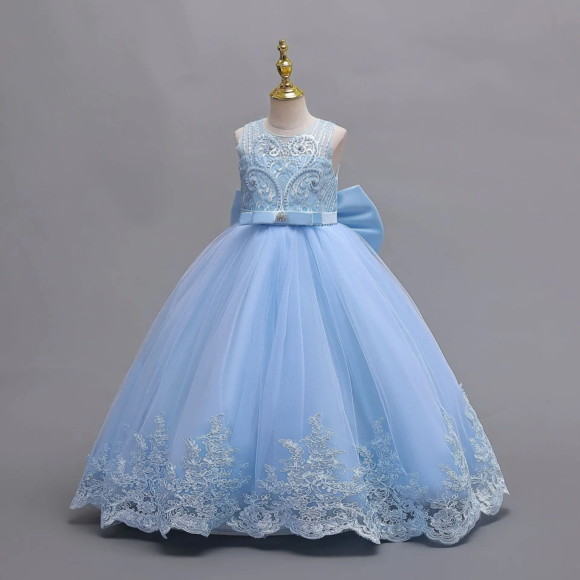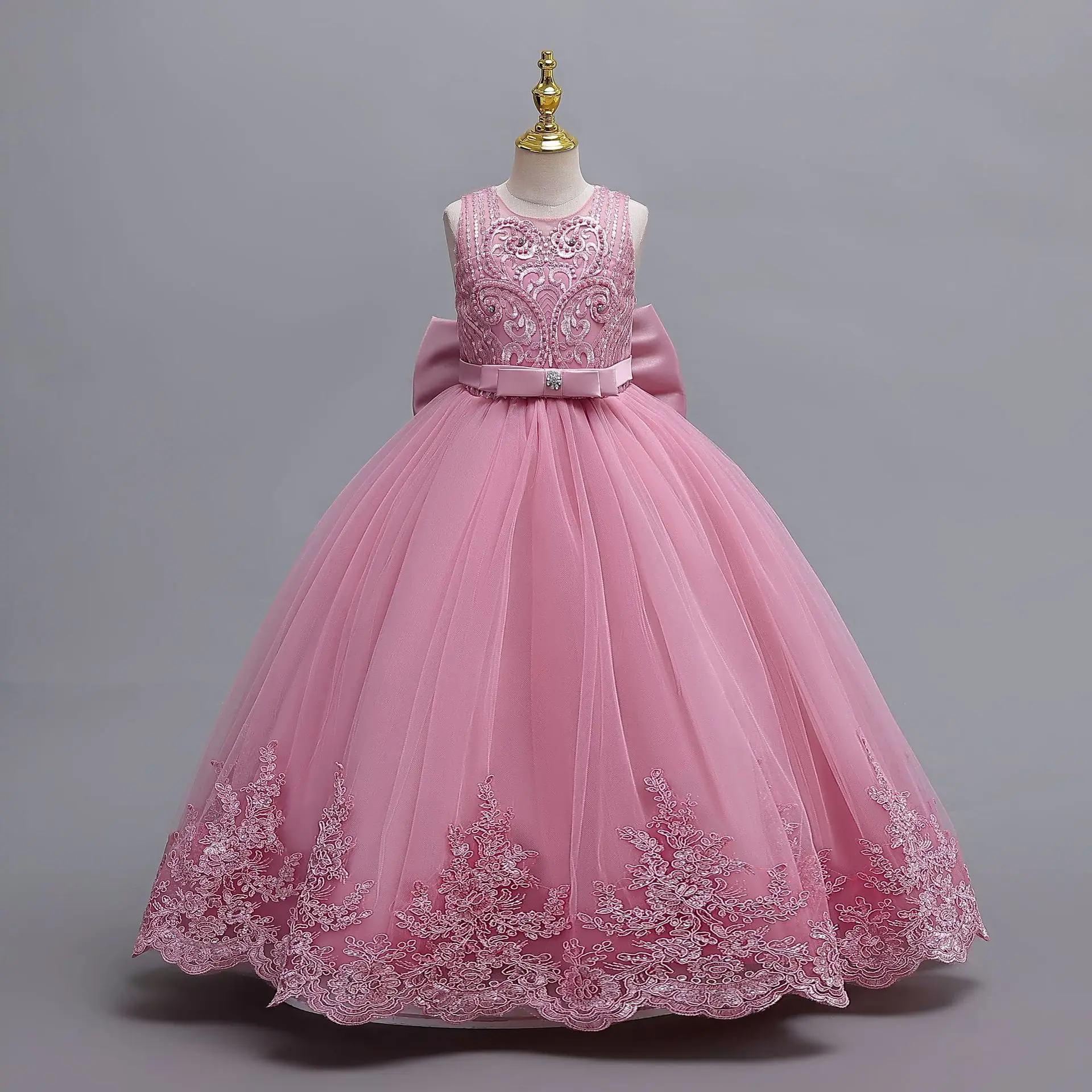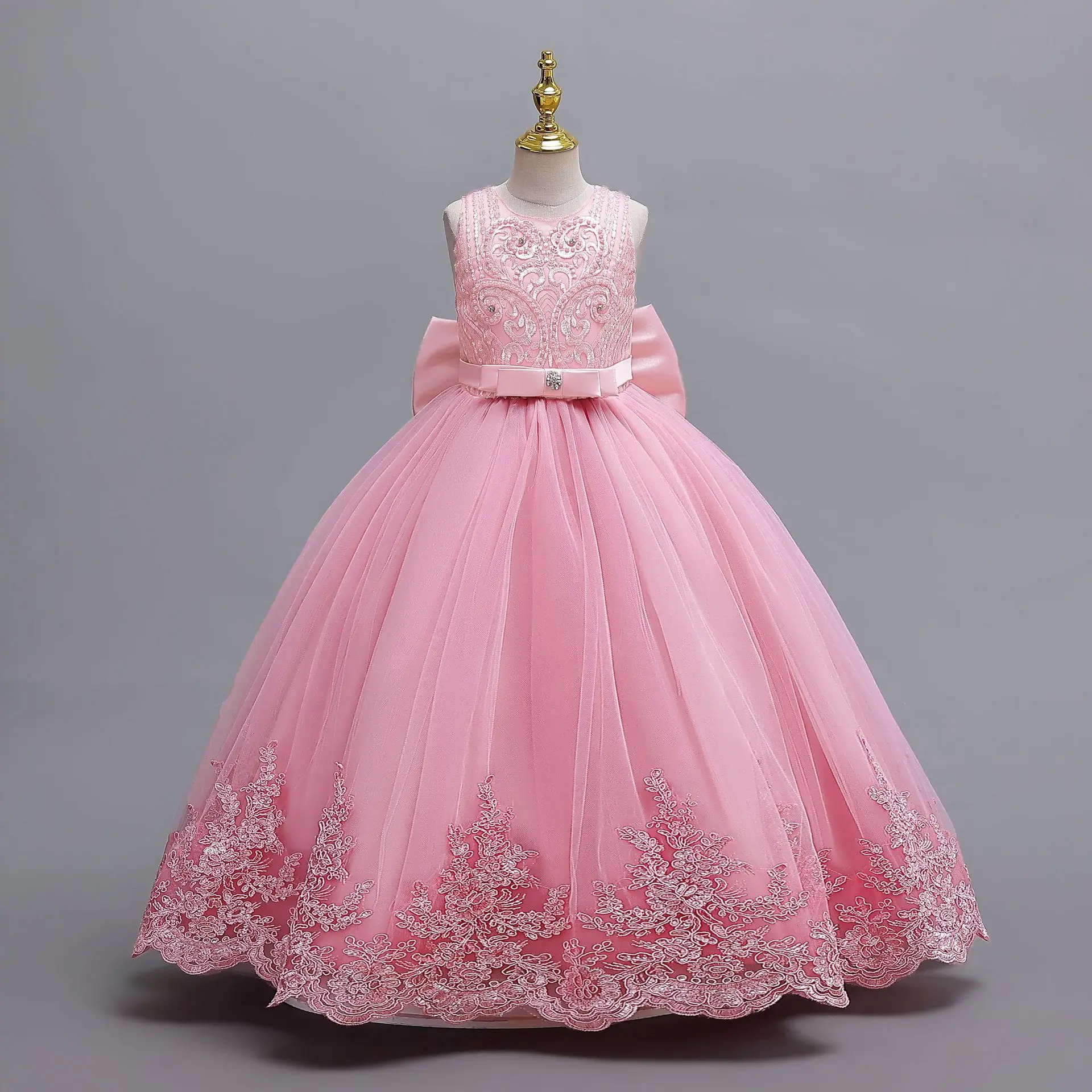 Brillant enfant en bas âge petites grandes filles brodé perlé nœud papillon mariage fleur fille fête d’anniversaire concours formel robe de vacances de pâques