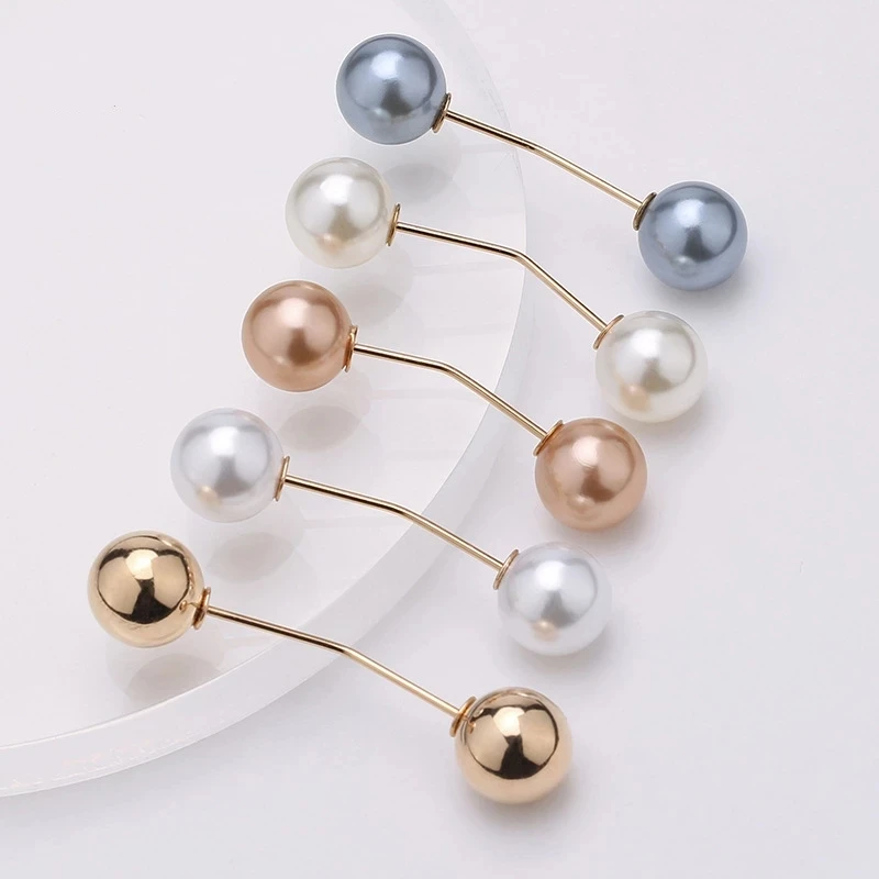 Broche en métal à Double perle pour femmes, accessoires de vêtements, épingle de sécurité fixe, Clip d’écharpe, décoration de robe, bijoux en perles, vente en gros