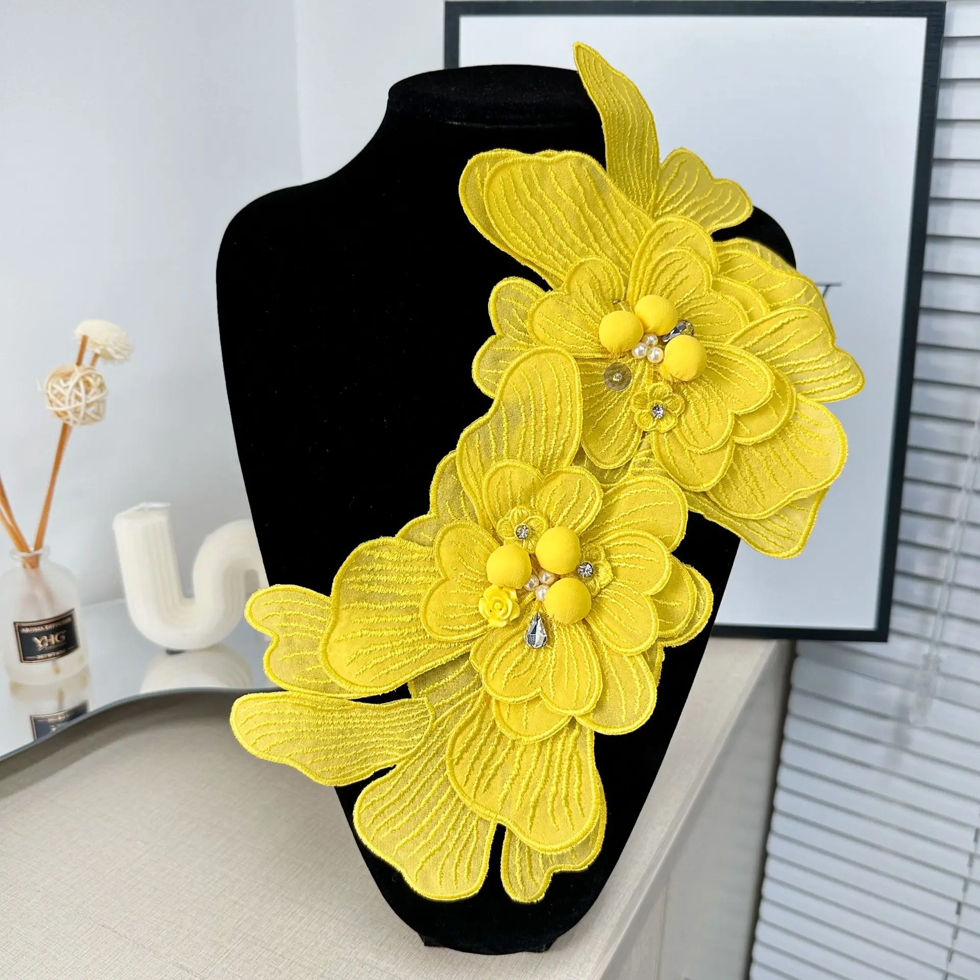 Broche en tissu, fleur décorative, grand Patch clouté brodé, accessoire de bricolage, Corsage
