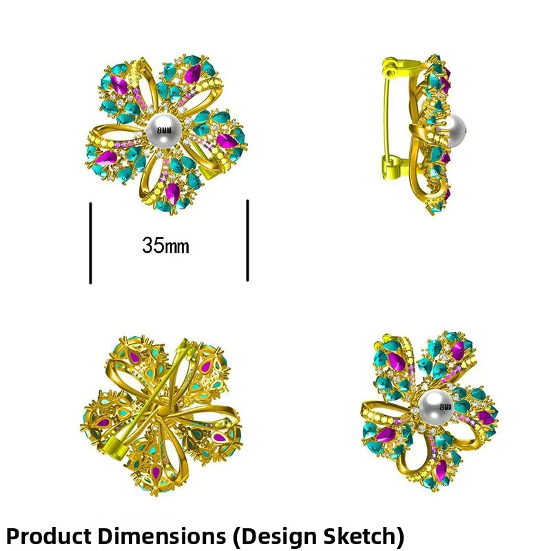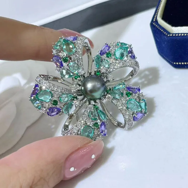 Broche fleur à cinq feuilles exquise, accessoires de bricolage, perle de Zircon micro-pavé ajourée, épingle décorative à la mode pour femmes |