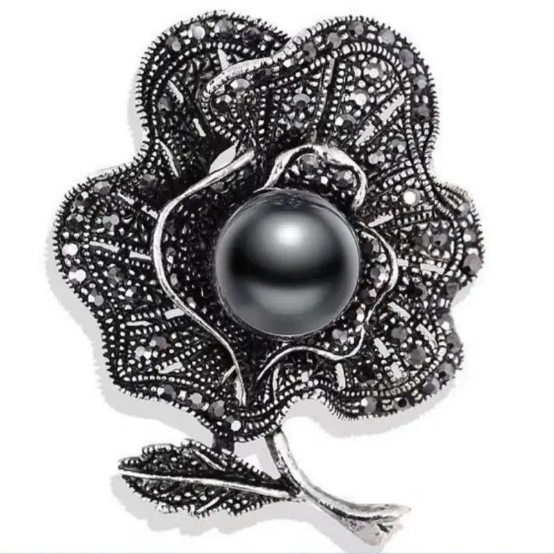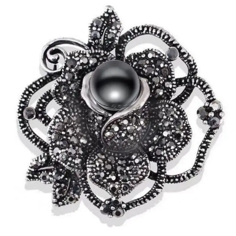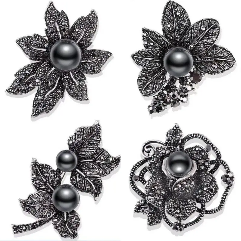 Broches à nœud en strass noir pour femmes, épingle à plante en perles, épingles à revers en fleur, cadeaux de fête pour amis, accessoires bijoux |