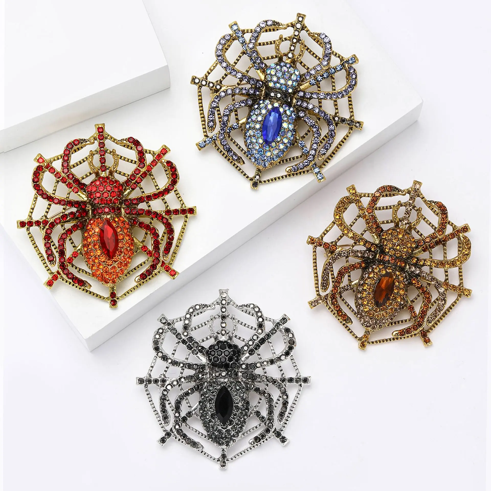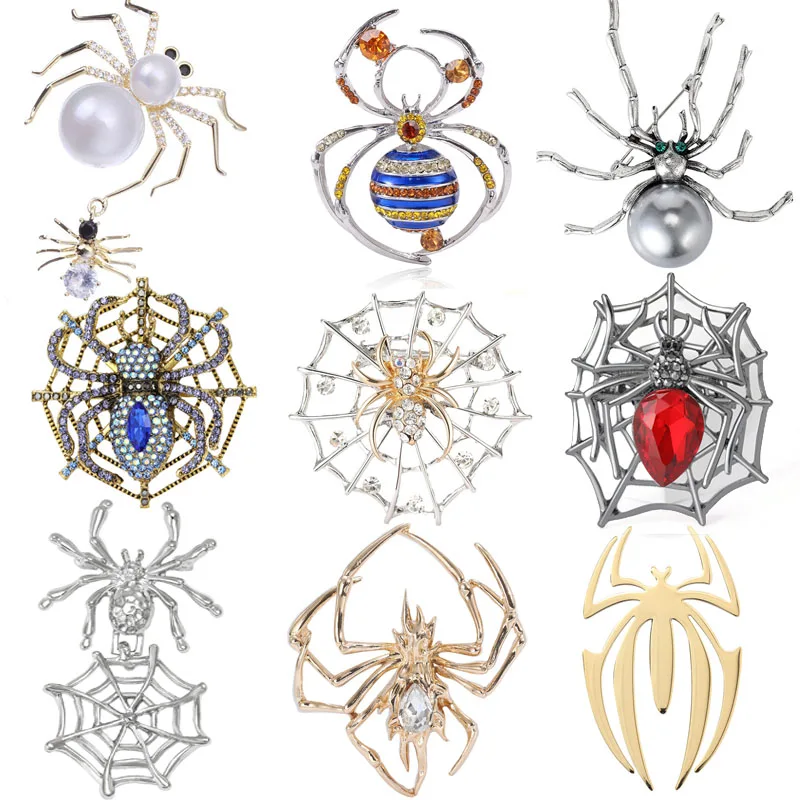 Broches araignée en strass pour femmes et hommes, épingles de Banquet en perles d’insectes, pour sac à dos en émail, bijoux cadeaux de fête d’halloween
