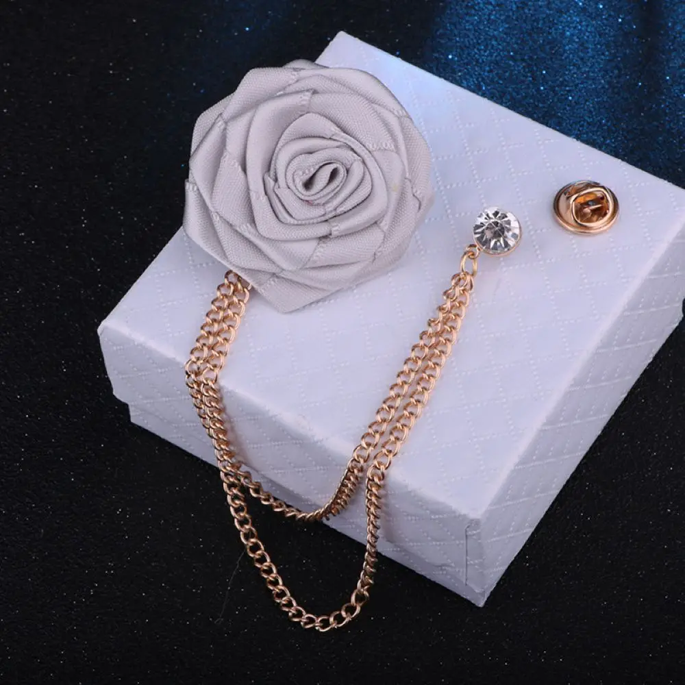 Broches de mariage pour marié, Art en tissu, fleur de Rose faite à la main, Badge à revers