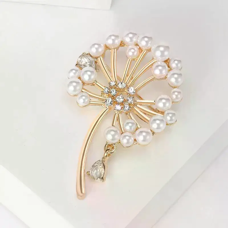 Broches de pissenlit en strass pour femmes, broches de plantes en perles, sac à dos de fête de Banquet, cadeaux, accessoires de bijoux |