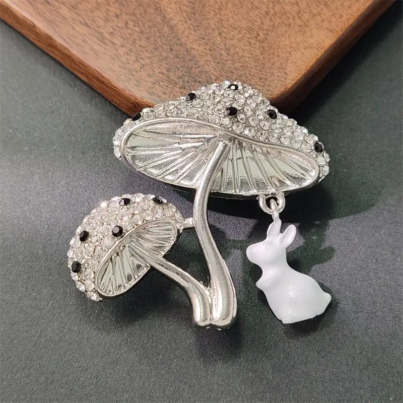 Broches en strass sur le thème des animaux mignons pour femmes ; Champignons et lapin, parfaites pour les fêtes décontractées ou comme cadeaux de bijoux.