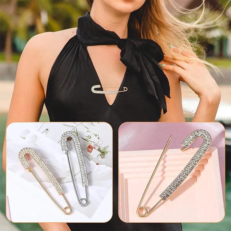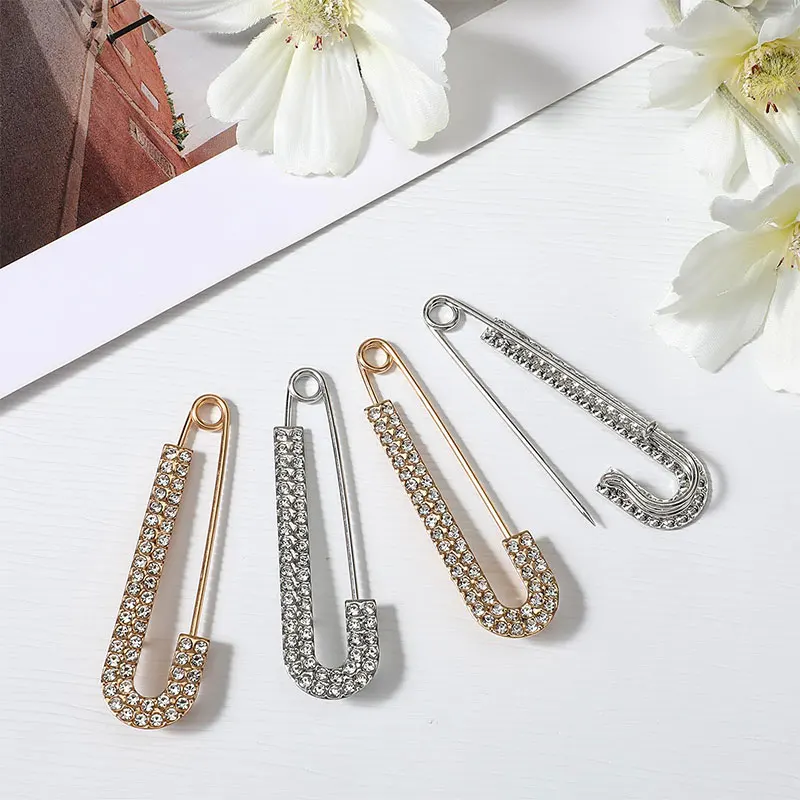 Broches tendance en strass pour femmes, 4 pièces, grandes épingles de sûreté, épingle à la mode pour bricolage, jupes artisanales, vêtements, accessoires de bijoux |