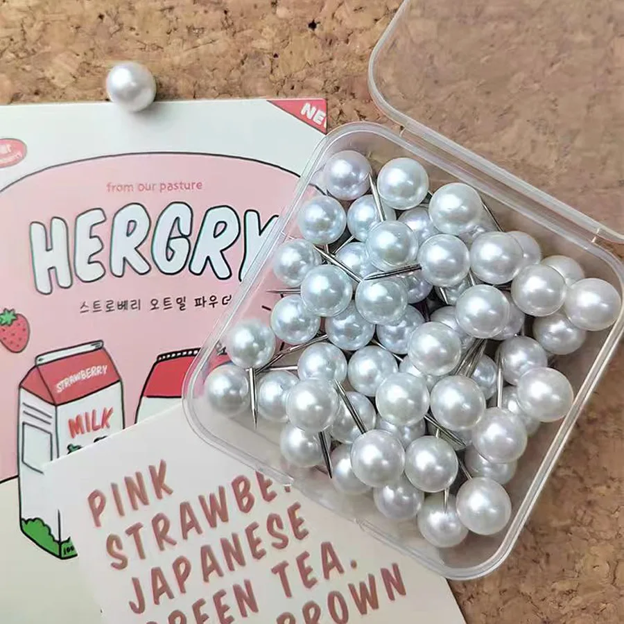 Bview Art 50/100 pièces punaises à tête sphérique en perles, punaises en plastique pour mur de photos, épingles décoratives pour tableau blanc de bureau
