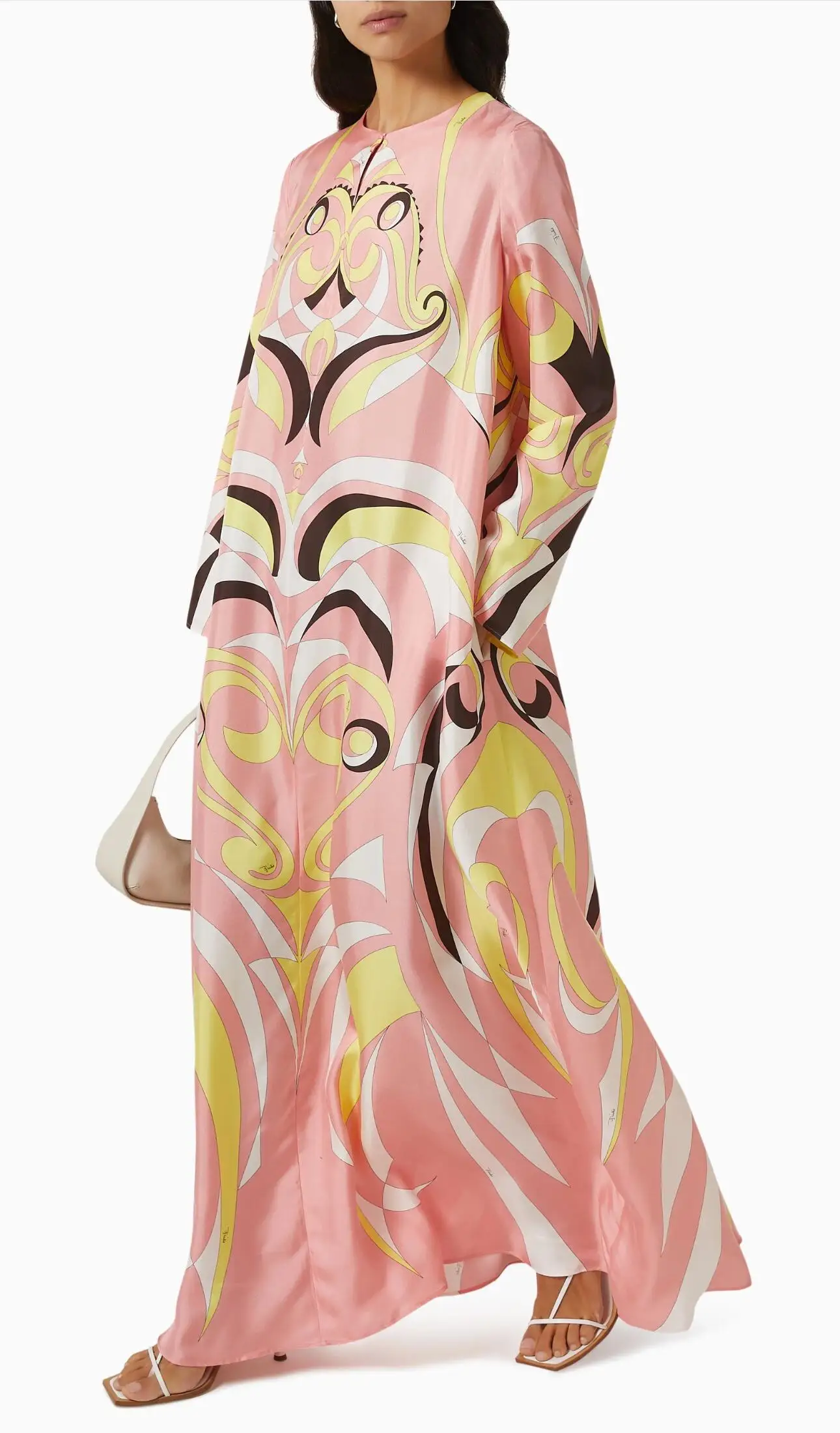 Caftan en soie Jersey pour femmes, Kaftan de luxe, manches longues, ample, Maxi, imprimé géométrique, nouvelle collection 2025 |