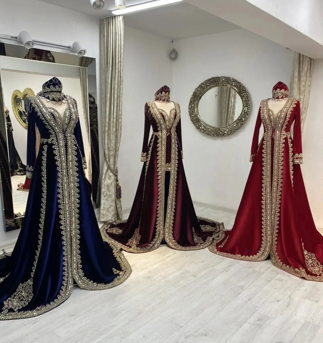 Caftan marocain Caftan robes de soirée musulmanes a-ligne manches longues appliques perlées dubaï arabe Abaya robe islamique personnalisée |