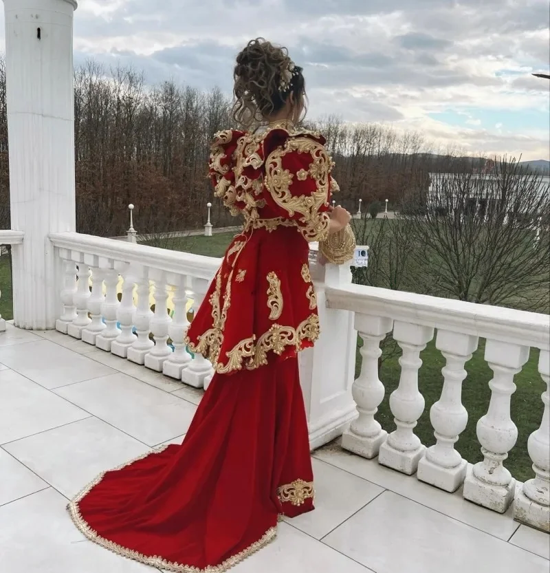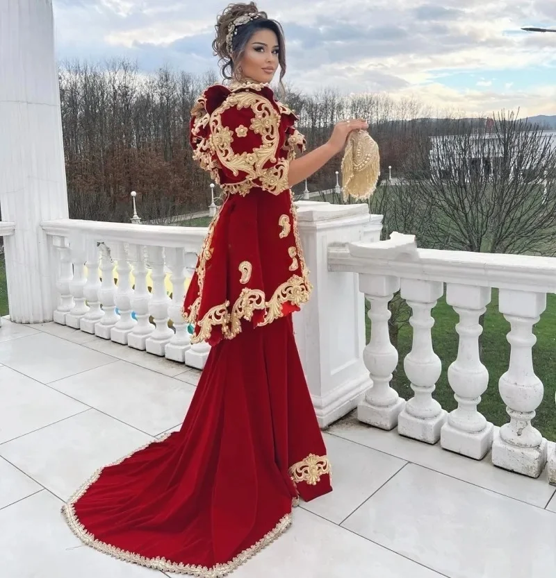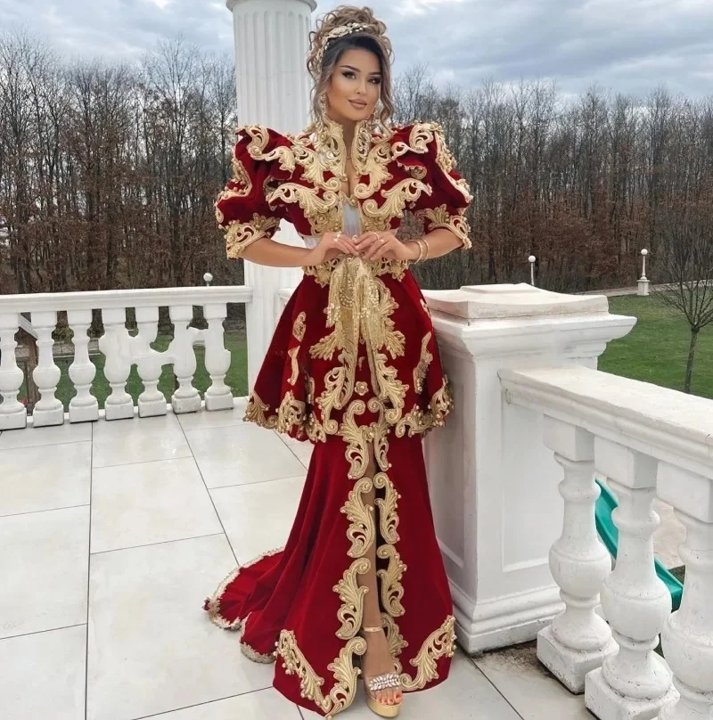 Caftan marocain bordeaux, robes de soirée musulmanes, avec des Appliques en velours, Abaya arabe de dubaï, robe islamique personnalisée