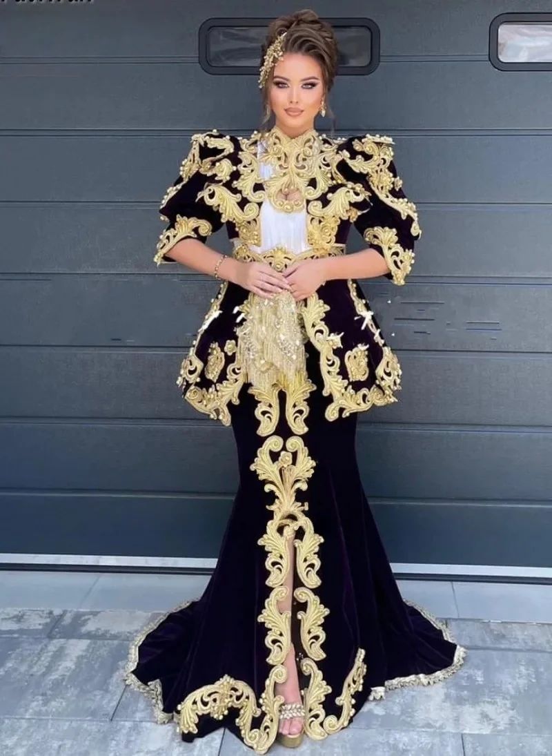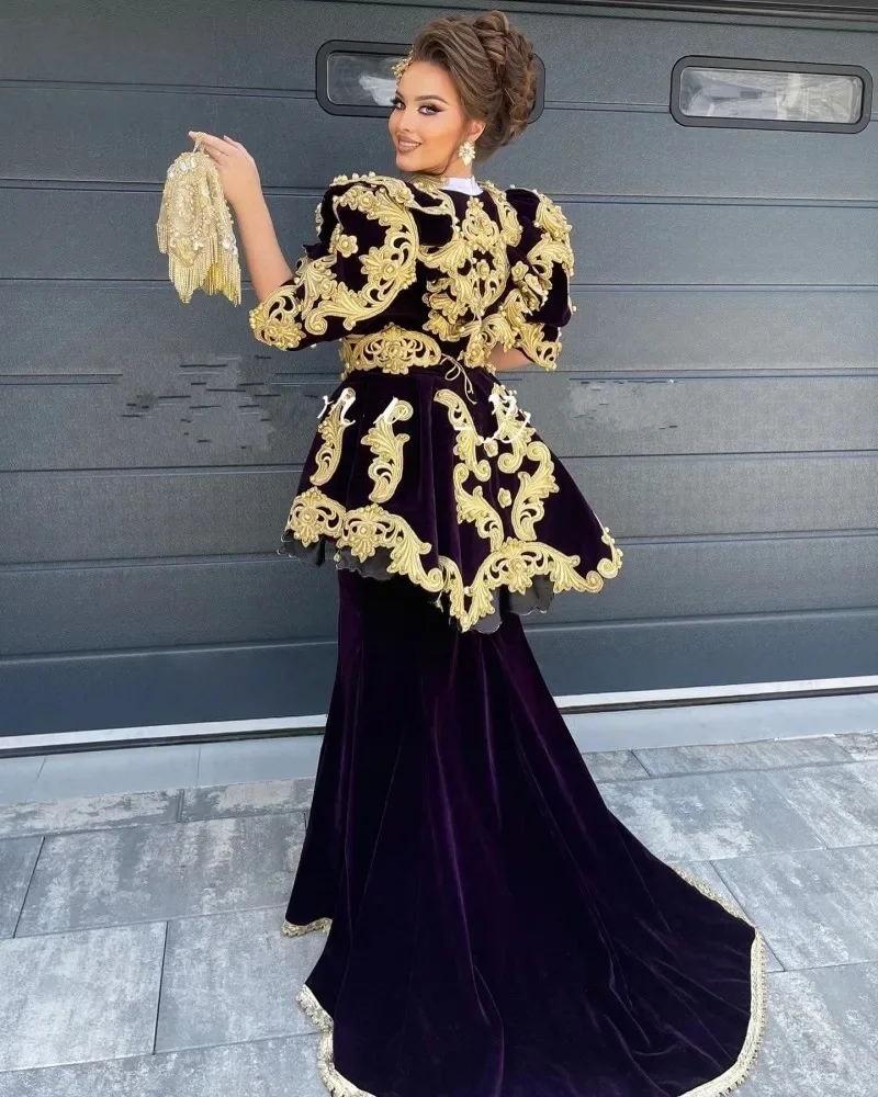 Caftan marocain violet Caftan robes de soirée musulmanes sirène demi manches dentelle perles dubaï arabe Abaya robe islamique personnalisée |