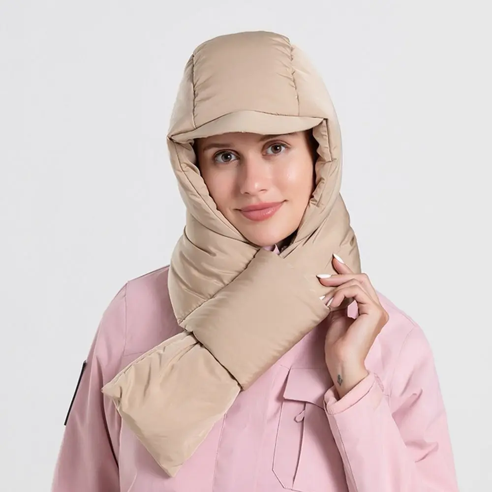 Cagoule coupe-vent en duvet de canard unisexe, chapeau de protection des oreilles croisées, écharpe de cou épaisse, chapeau de sport de plein air, casquette à la mode