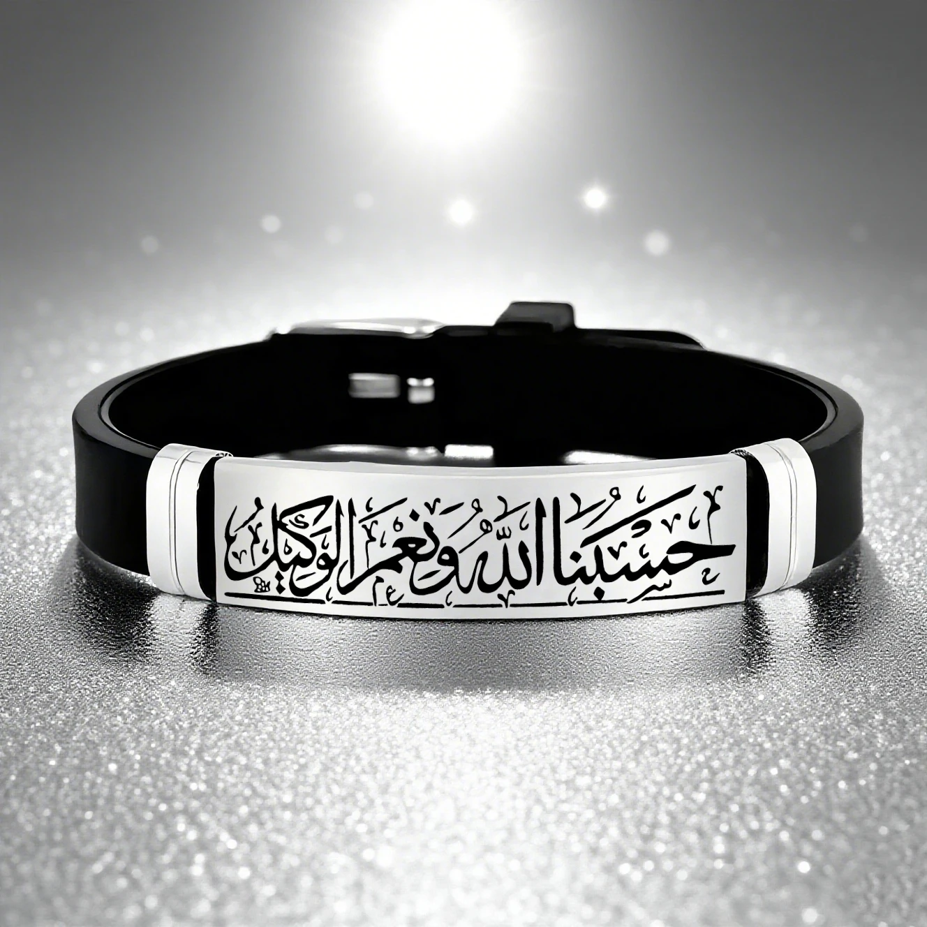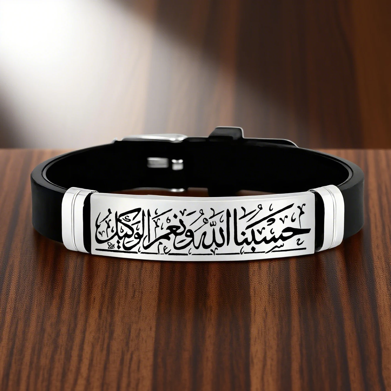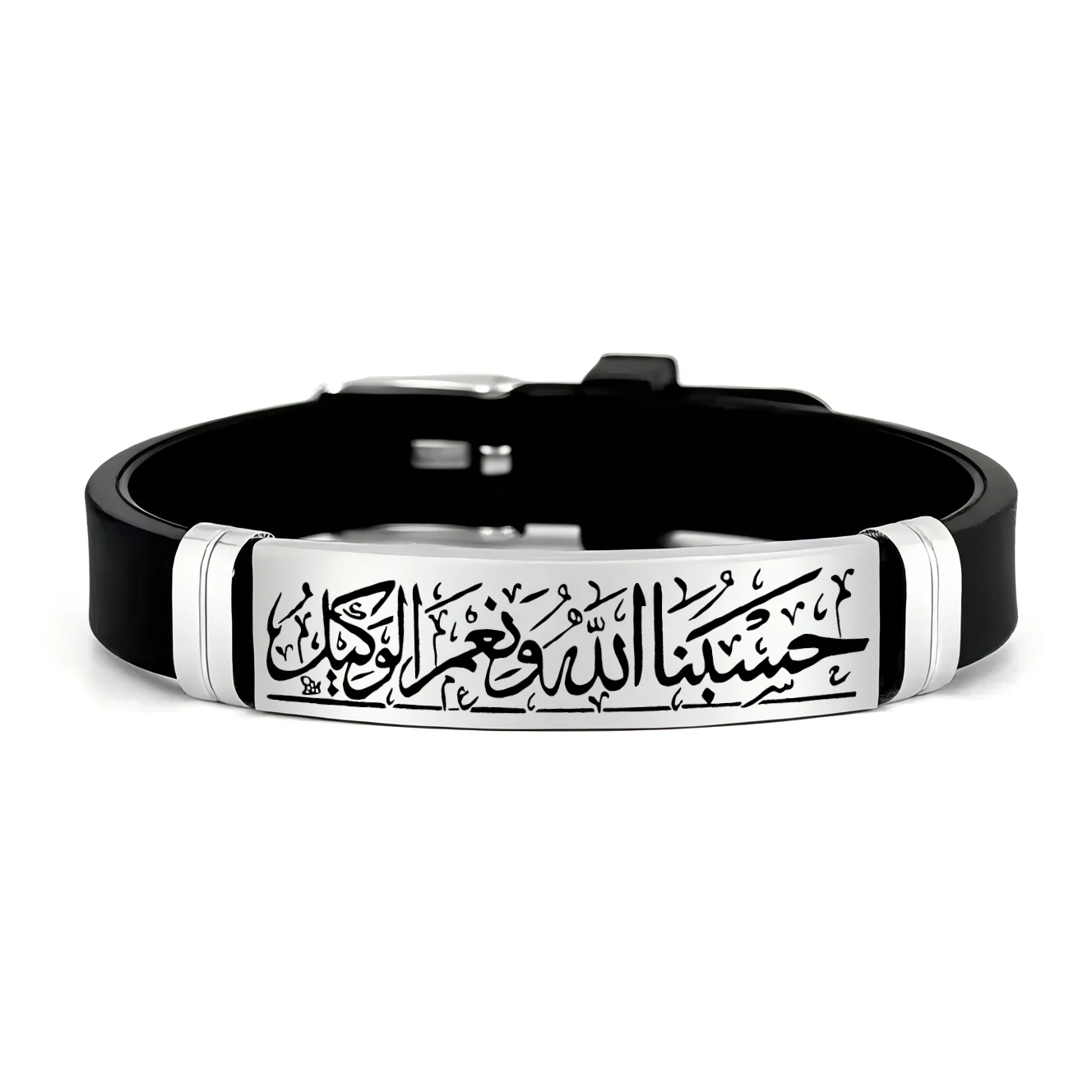 Calligraphie arabe islamique, bracelet en acier inoxydable, prière pour la bénédiction et la protection de l'Allah, Eid al Fitr, Thanksgiving du Ramadan |