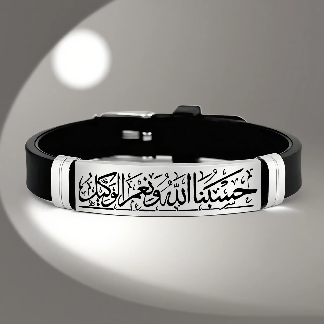 Calligraphie arabe islamique, bracelet en acier inoxydable, prière pour la bénédiction et la protection de l’Allah, Eid al Fitr, Thanksgiving du Ramadan