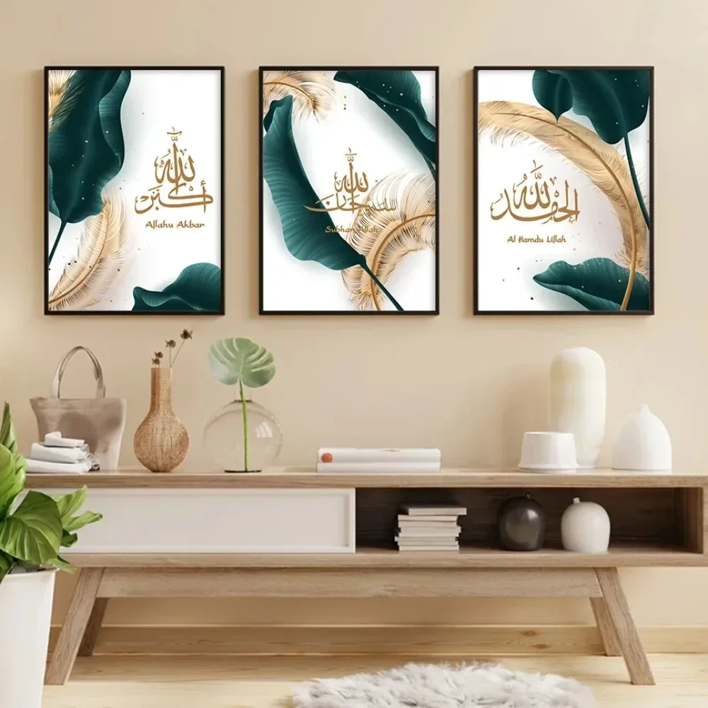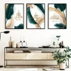 Calligraphie arabe islamique feuilles vertes dorées, Art mural, affiche imprimée sur toile, adaptée à la maison, au salon, à la décoration de la pièce