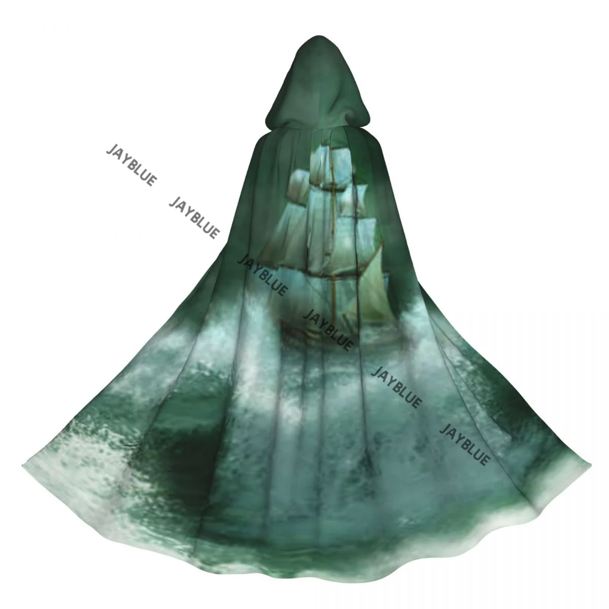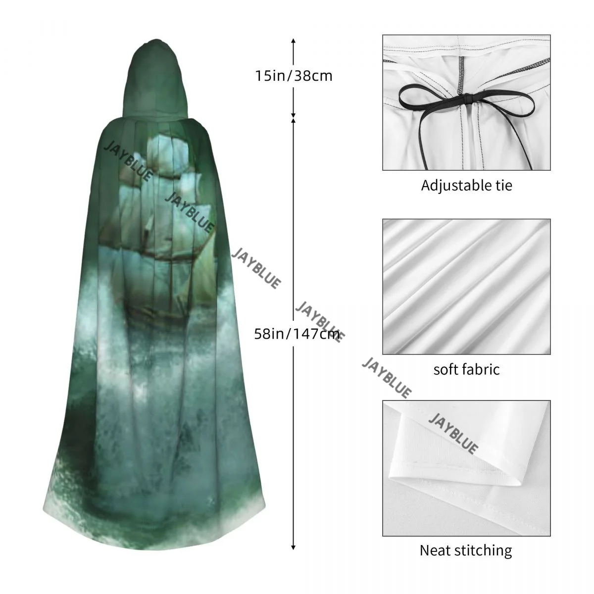Cape à capuche unisexe avec capuche, vieille navire en tempête de tonnerre, œuvre d'art numérique, Cape d'aventure fantaisie, Cape de sorcière, Costume de Cosplay |