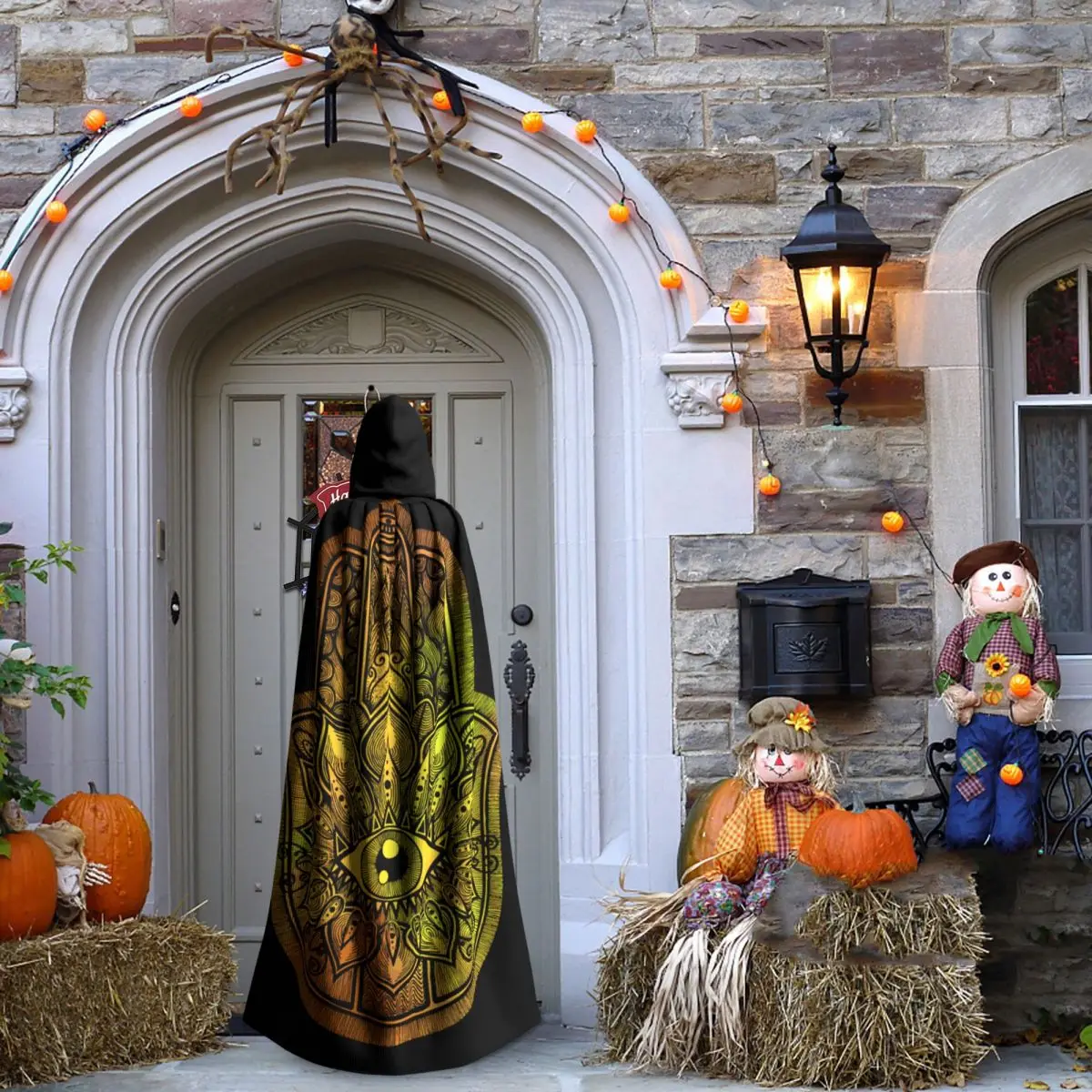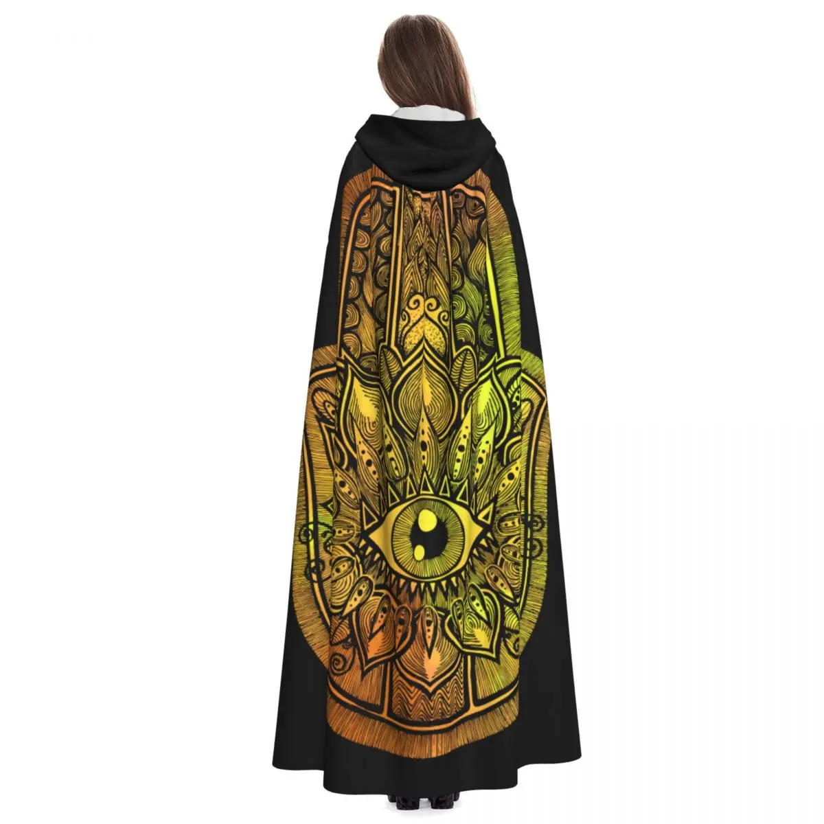 Cape de sorcière à capuche unisexe, Everak avec capuche, Hamsa jaune, Vampire Cosplay |