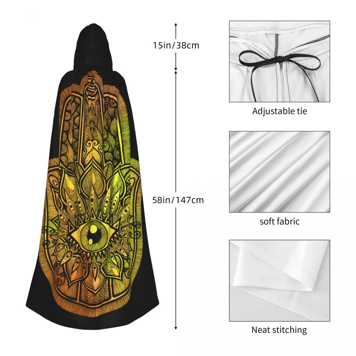Cape de sorcière à capuche unisexe, Everak avec capuche, Hamsa jaune, Vampire Cosplay