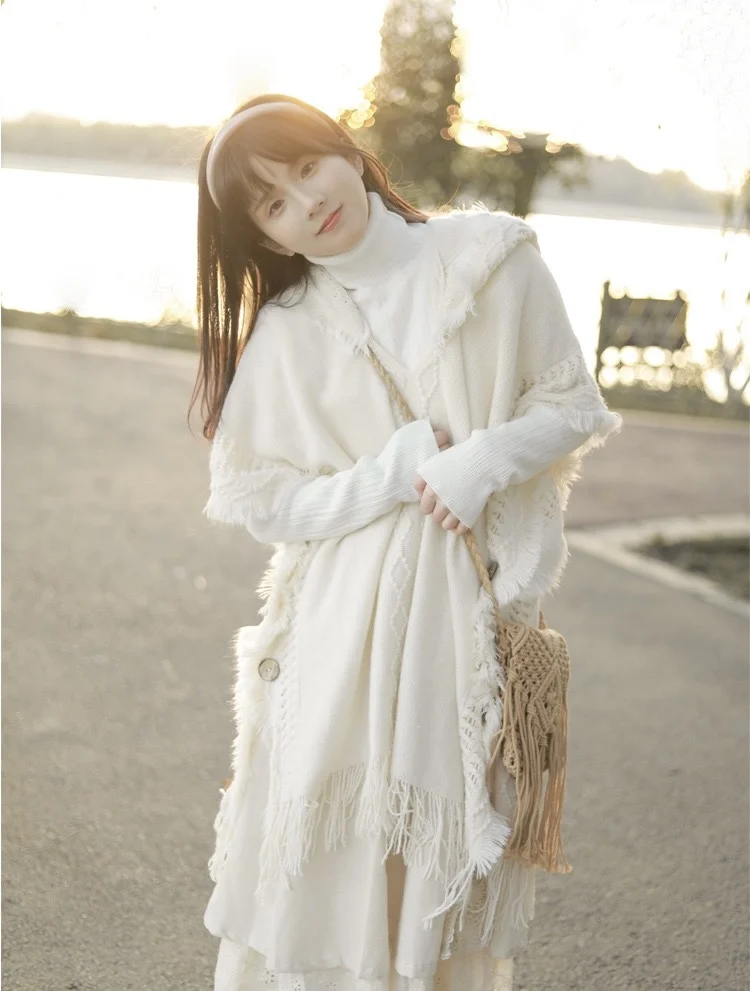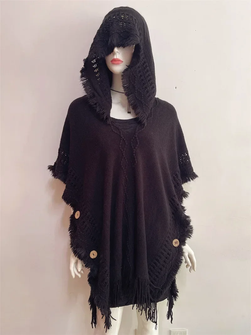 Cape Poncho à capuche en Crochet, châle Boho Chic à franges pour femmes, vêtements d'extérieur polyvalents printemps-automne |
