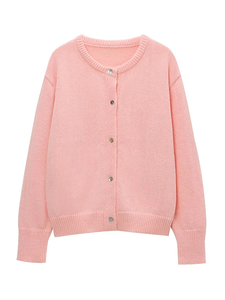 Cardigan décontracté à simple boutonnage pour femmes, col rond doux, pull à manches longues, streetwear chic pour femmes, mode