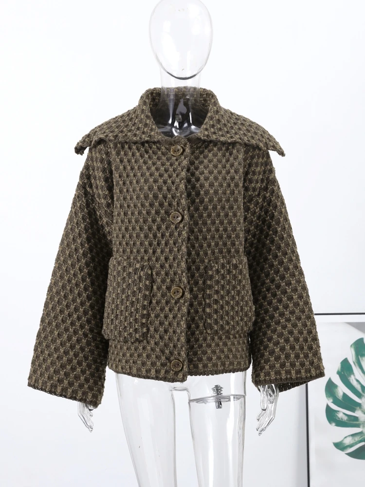 Cardigan en tricot décontracté pour femme, grand revers, simple boutonnage, manches longues, poches, manteaux, pull chaud, automne hiver 2025