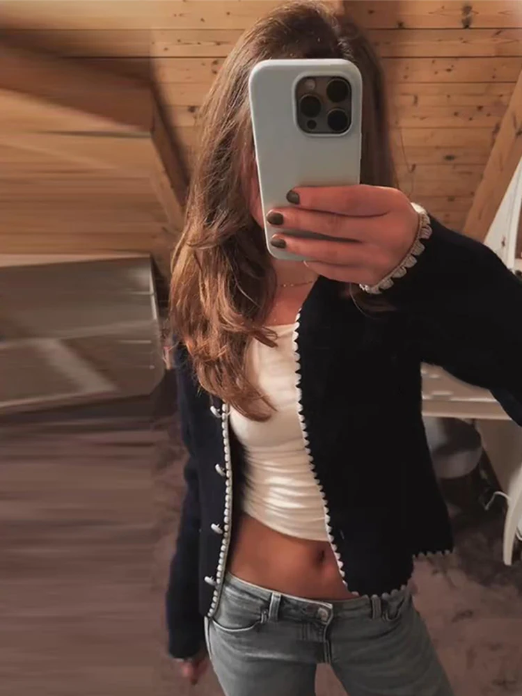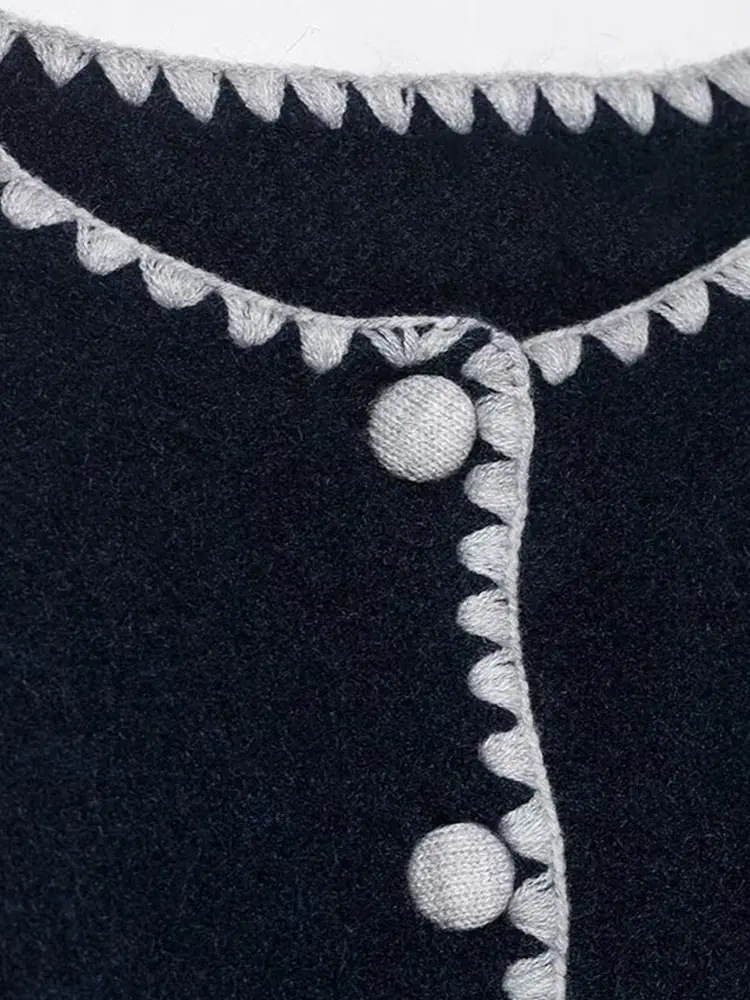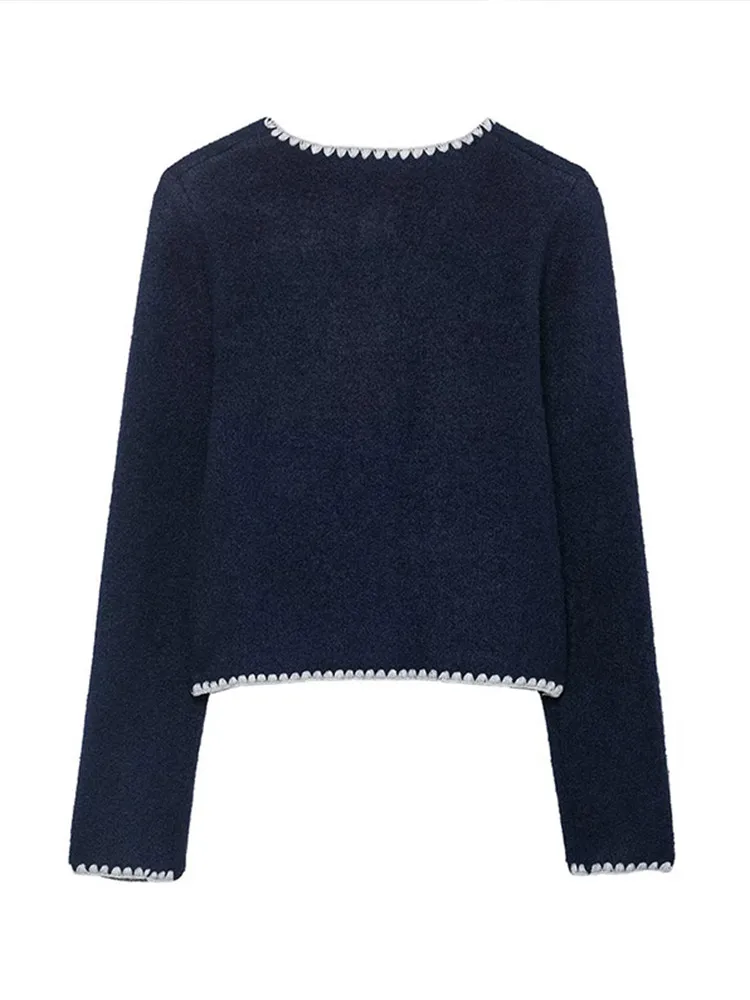 Numéro de Modèle: Navy Blue Embroidered Knitted Cardigan For Women New Streetwear
