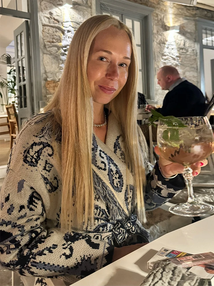 "Ce cardigan est tout simplement magnifique ! La qualité du tricot est irréprochable et les couleurs du jacquard sont vraiment superbes. La coupe est très flatteuse et la ceinture à la taille est un petit plus très agréable. Le seul bémol serait que les franges ont tendance à s'effilocher un peu après quelques lavages, mais dans l'ensemble c'est un vêtement très confortable et élégant que je recommande sans hésiter !"