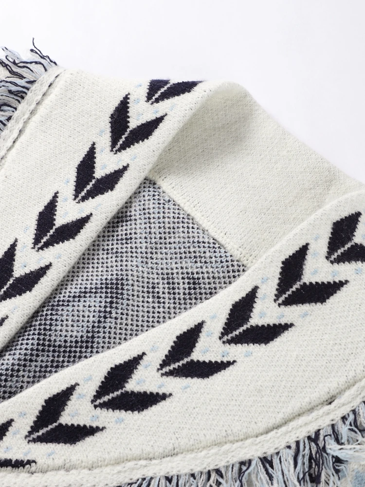 Cardigan imprimé Patchwork à franges pour femme, Jacquard, col rabattu, manches longues, ceinture, taille, pull tricoté, automne 2025 |