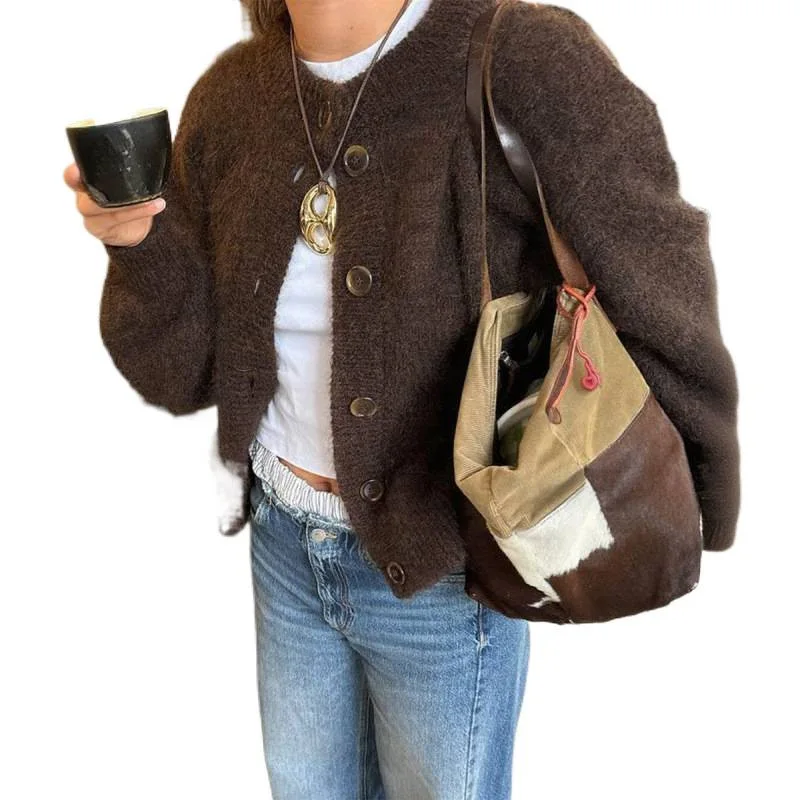 - Boutons en bois et franges apportent une touche artisanale et naturelle