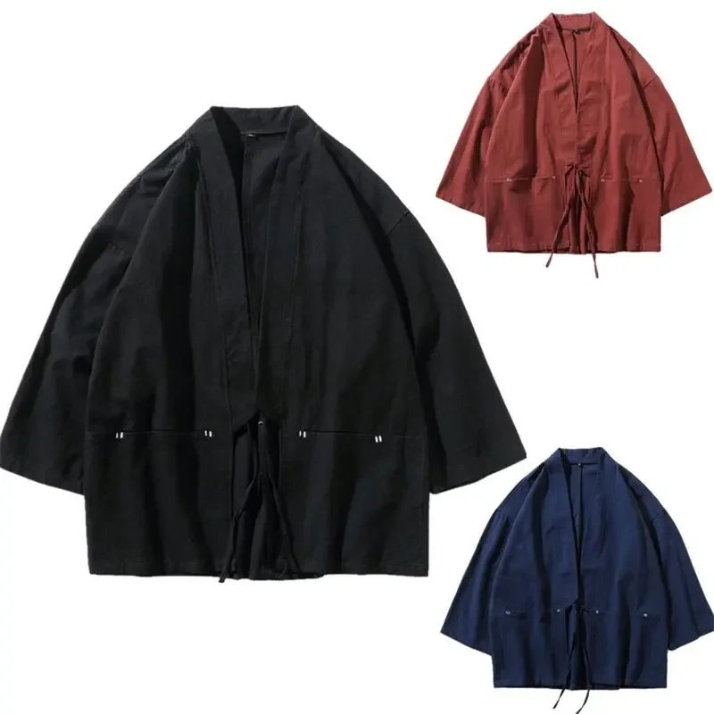 Cardigan rétro de Style japonais traditionnel pour hommes, Kimono samouraï Haori, guerrier japonais Yukata Obi, manteau asiatique, vêtements pour adultes