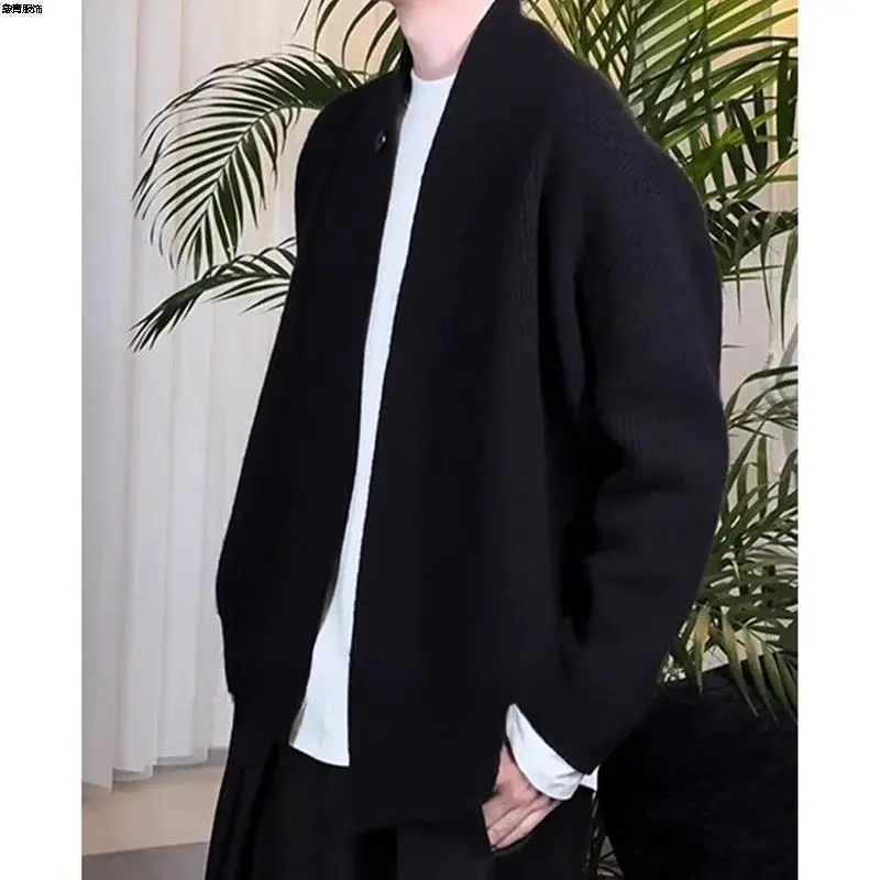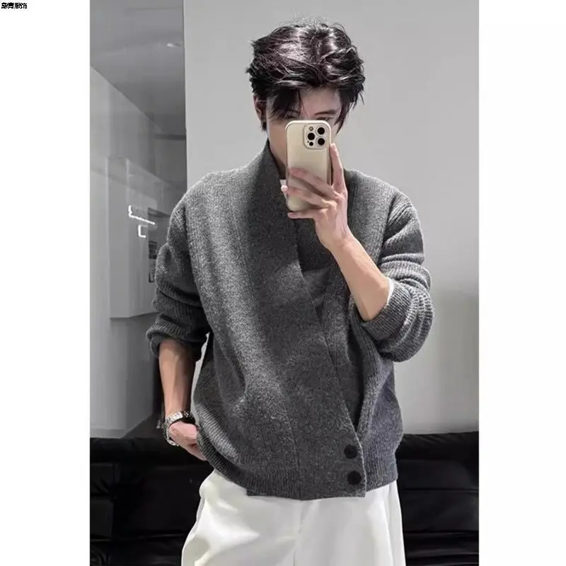 Cardigan taoïste Robe pull hommes automne hiver Style ample décontracté fleur gris pull veste |
