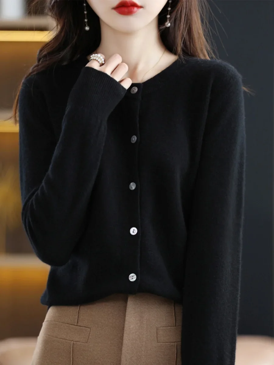 Cardigans courts à simple boutonnage pour femmes, pull à col rond, tricots minces pour dames, monochromatique, coréen, automne, hiver, 2024
