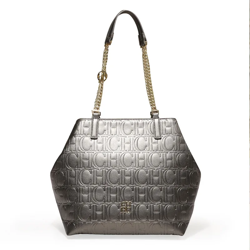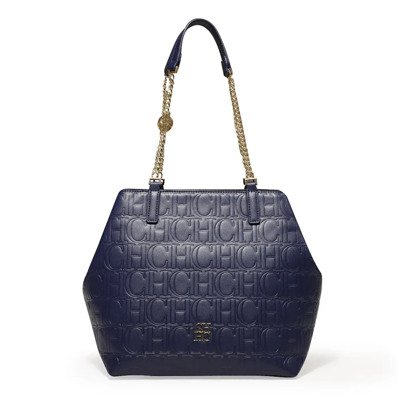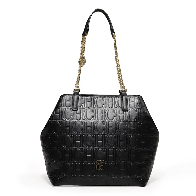Carolina Herrera Chic – sac à bandoulière Hexagonal structuré pour femmes, fourre-tout de couleur unie, grande capacité, Design imprimé de lettres