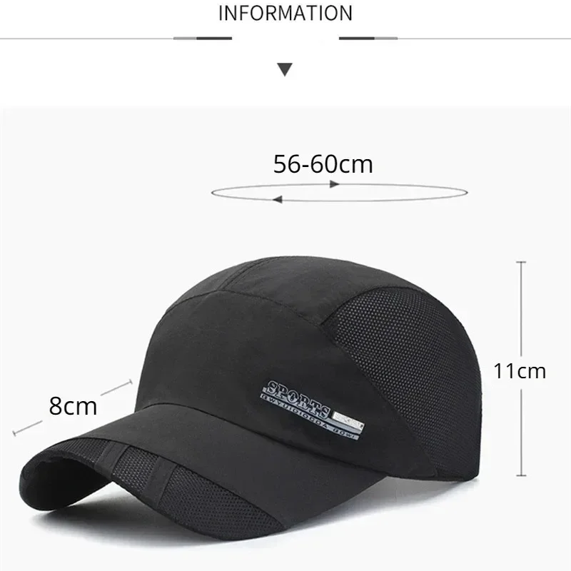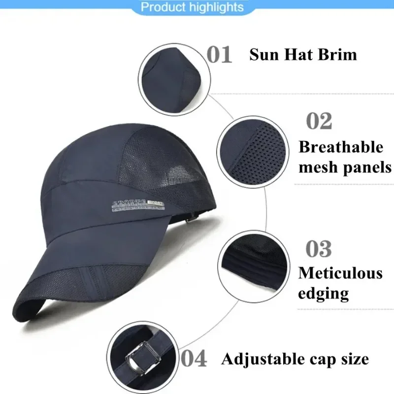 Casquettes de sport Chapeau de soleil d’été pour hommes et femmes Chapeau de baseball de pêche Protection UV Casquette respirante en maille légère à séchage rapide en plein air