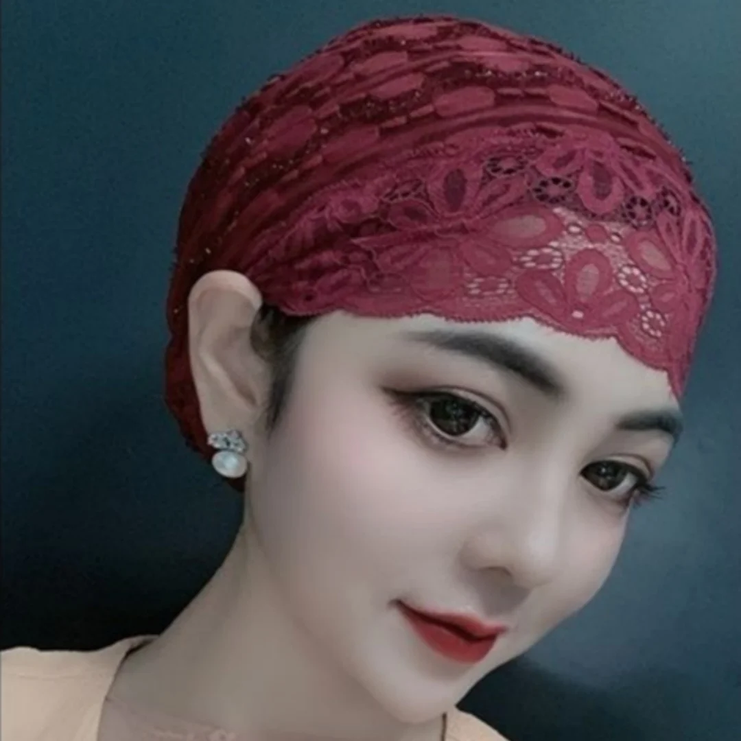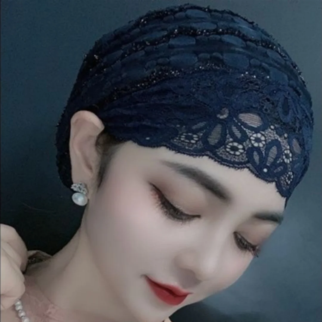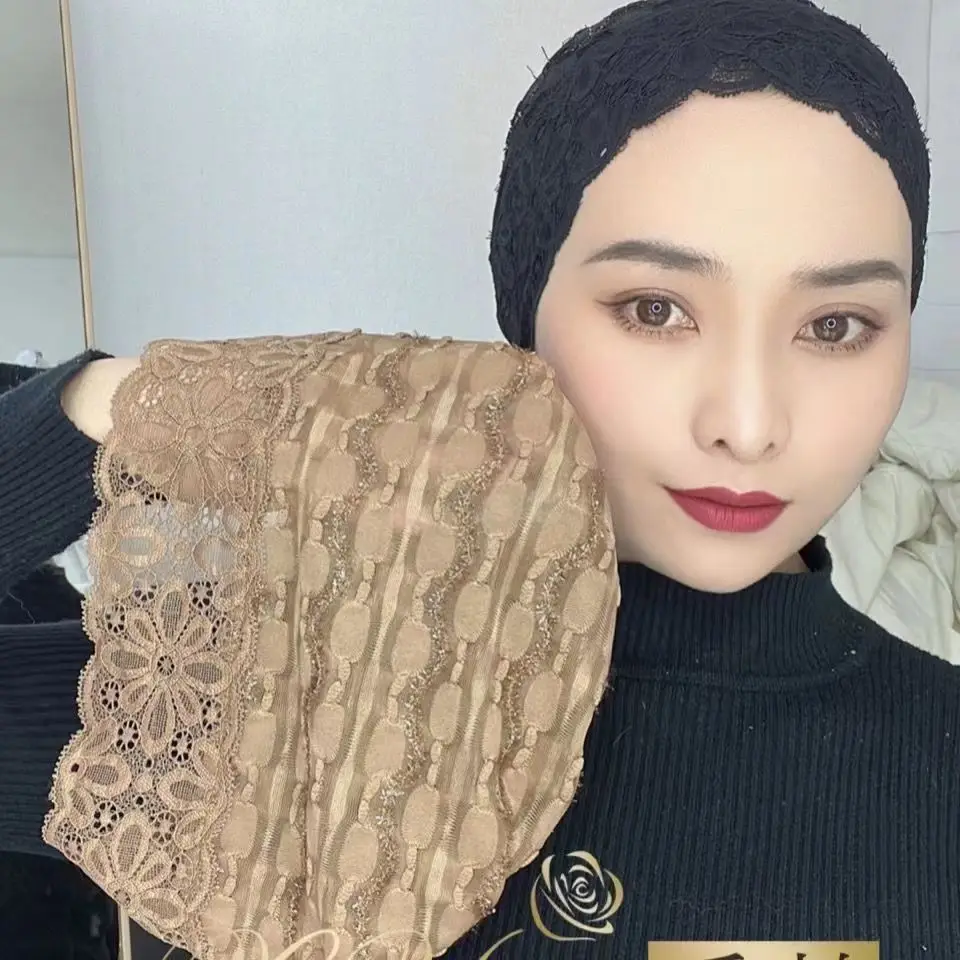 Casquettes Hijab intérieures musulmanes pour femmes, couvre-tête en dentelle brillante, bonnet extensible, Turban, couvre-chef |