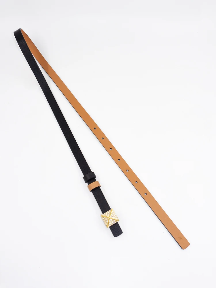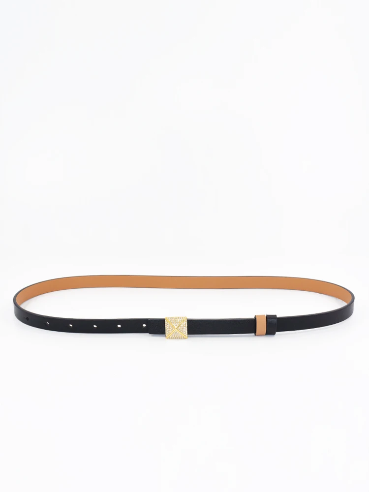 Ceinture à boucle carrée tridimensionnelle en biscuits pour femme, fine double face, décorée d’une petite ceinture, gris dia