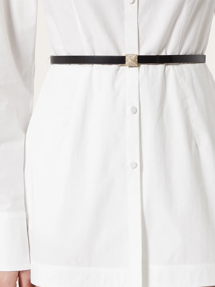 "Cette ceinture est vraiment une belle pièce ! J'adore son design élégant et sa texture fine et douce. Elle se porte très bien et s'adapte parfaitement à ma taille. Le seul bémol serait que la boucle carrée est un peu plus grosse que je ne l'aurais souhaité, mais dans l'ensemble je suis très satisfaite de mon achat. La qualité est au rendez-vous et je la recommande sans hésiter !"